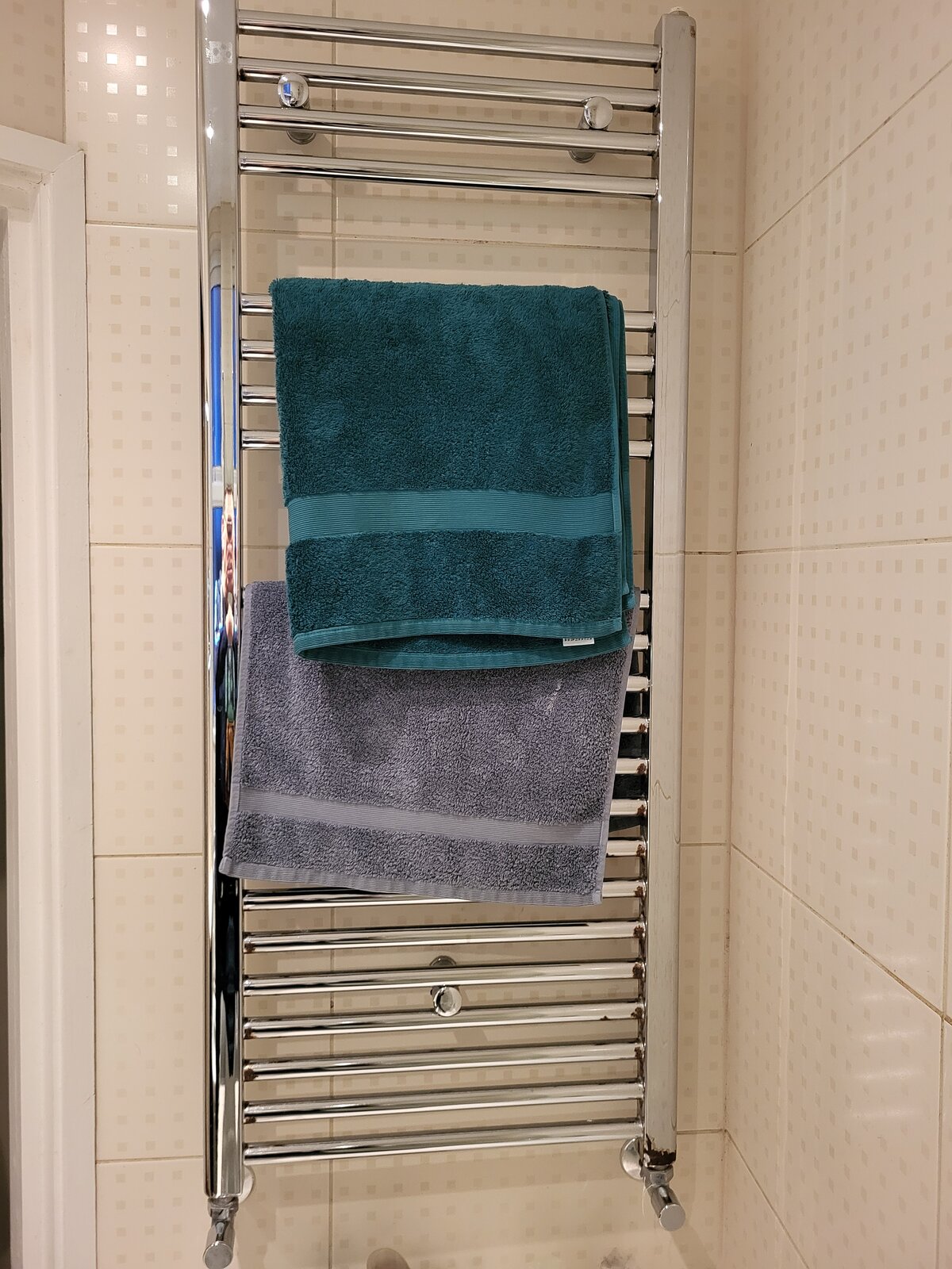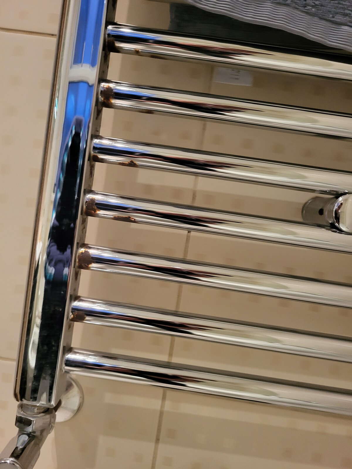 Hi guys. My heated towel rail was installed in 2012 and works great but the corners of most rungs are rusty and the chrome flaked off. It hasn't got worse as I now always make sure to dry the rails after a shower. It's a very small bathroom which does have a humidistat fan over the bath and I do keep the window open as well but nevertheless condensation caused it. The rail is about 4 foot long by 1.5 feet wide. My question is, is it possible to get a better quality heated towel rail.more resistant to moisture?