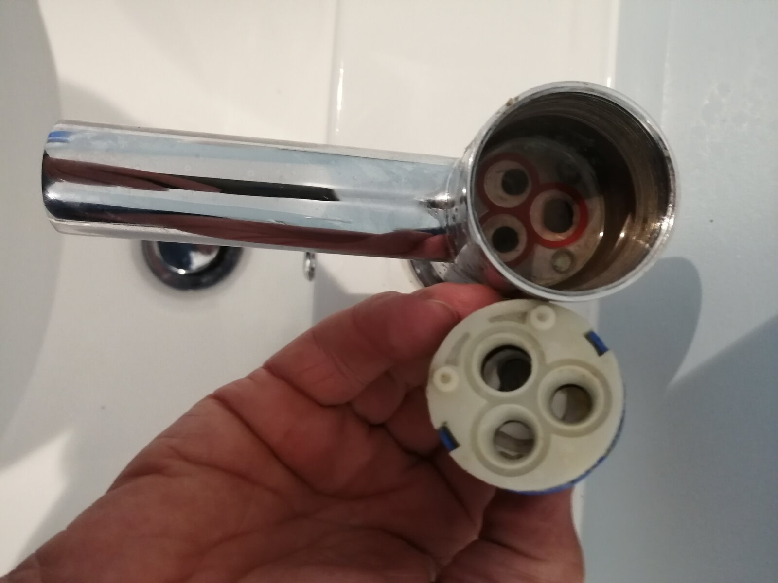I have water leaking out of the top of the basin tap. I've opened it up to see if there's anything serviceable, but the o rings LOOK ok. Anyway, it'd be easier to replace the cartridge, only I dont know which one it would be. Anyone know the make of this tap?