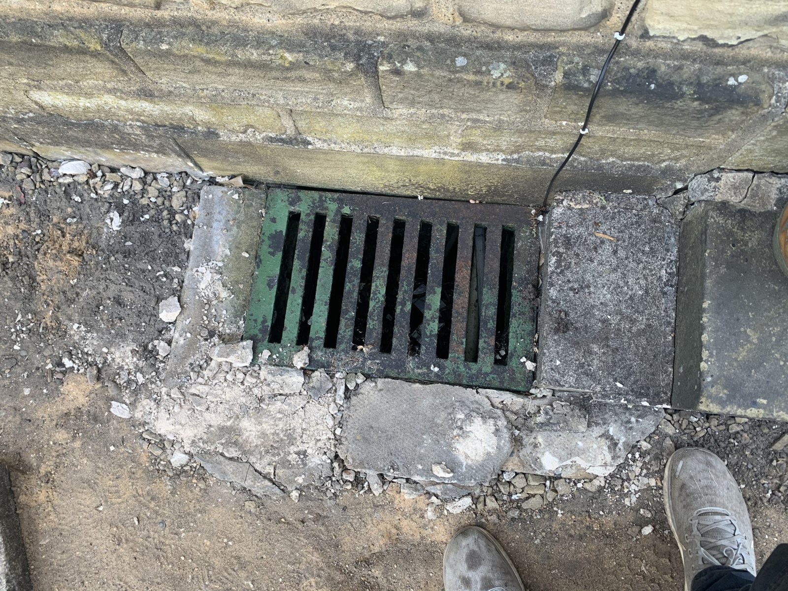 I've pulled the old patio up and i think i know where I'm heading with the new one apart from one bit. There is a grate which drops down just under a meter, running across the void are the conduits for the garage power and main gas supply. About half way down there is an air brick which goes into the cellar next to the gas meter and is the only ventilation into the cellar.