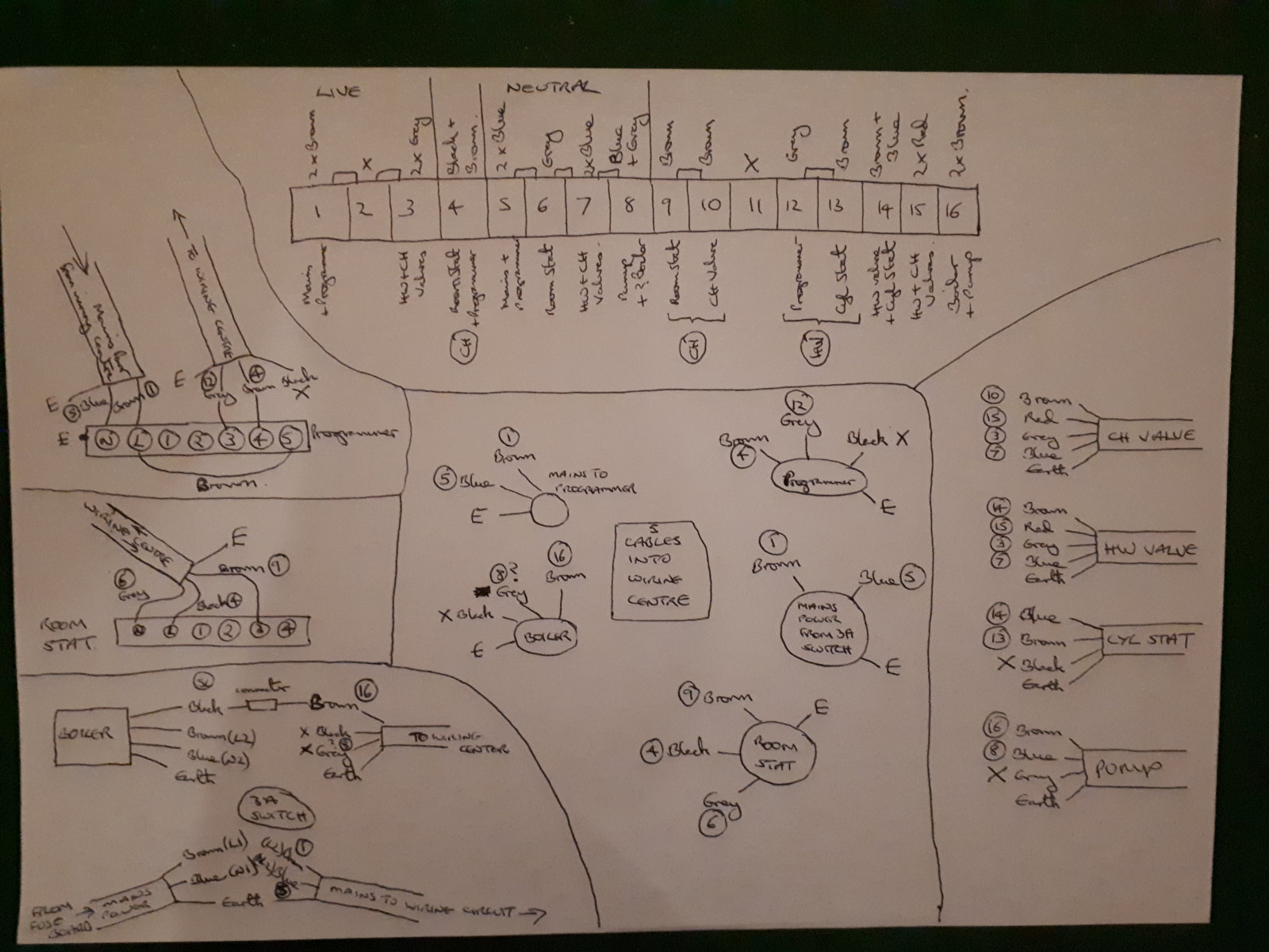 ). I can also see 4 x cables coming into the wiring centre from under the floor, and am currently trying to work out what these 4 cables are connected to.