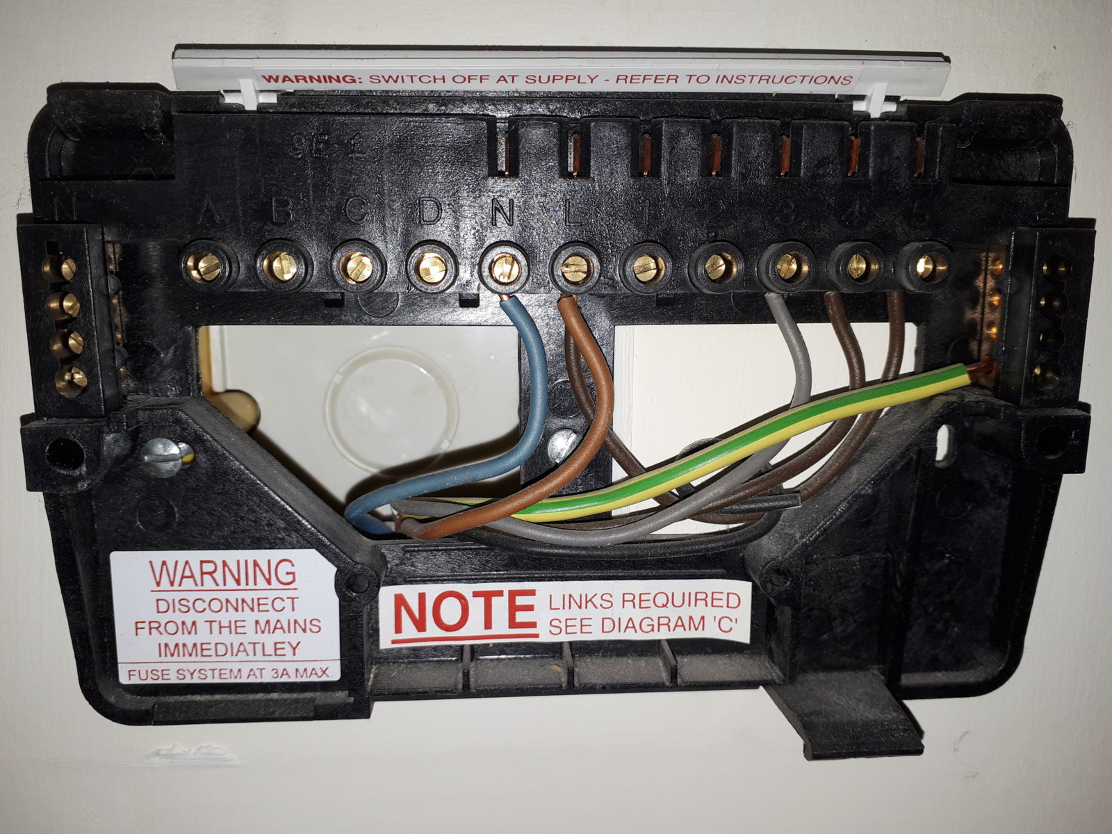). I am not sure what 4th cable is from! It isn’t from boiler as that is connected to downstairs switch (white cable in switch image).
