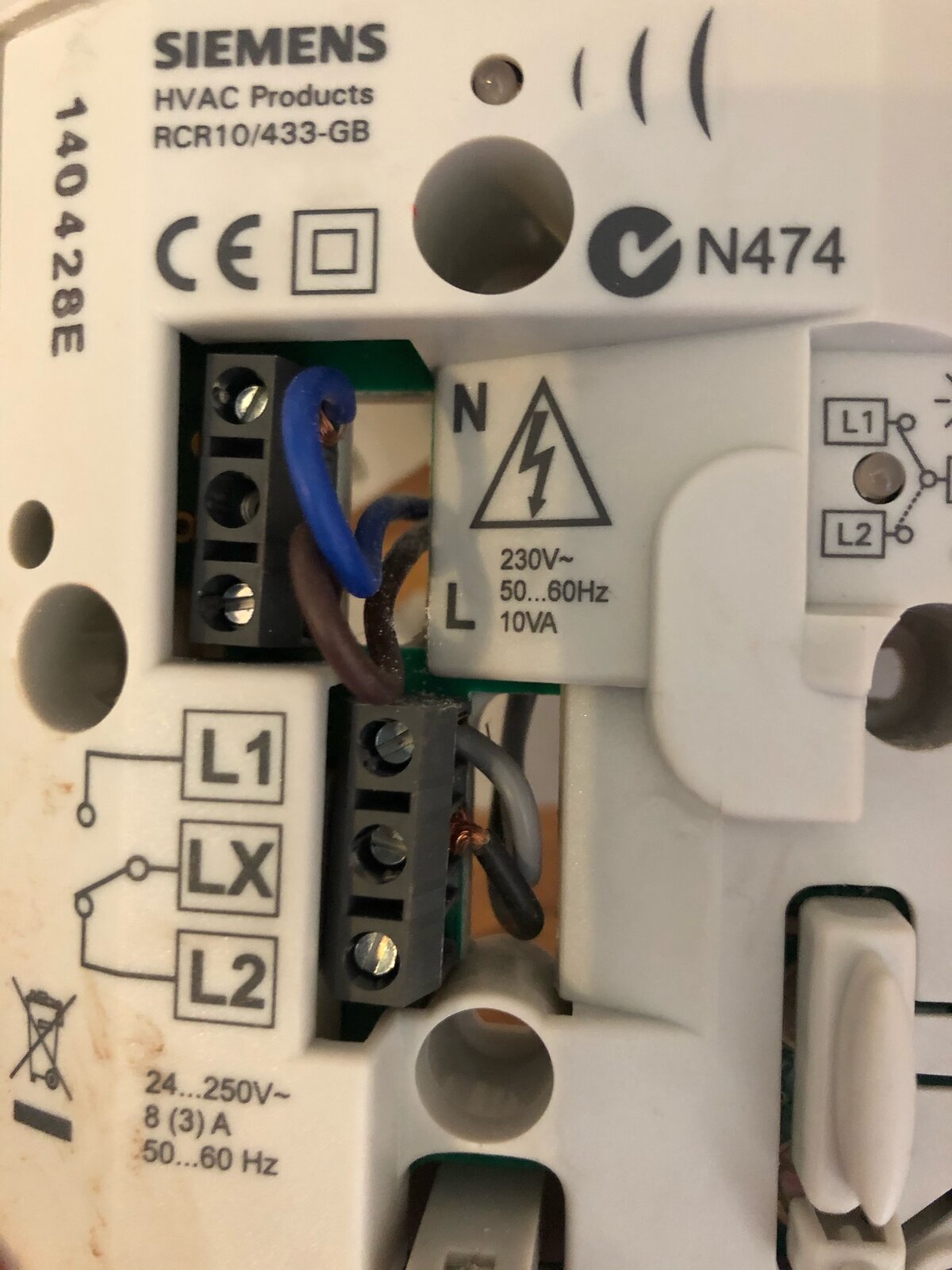 One thing I'm thinking is that I know the siemens receiver doesn't have polarity so is it possible that L1 and LX are wired the wrong way - not an issue, but when I wired the hive this assumption blew the circuit board because it was backwards? Does this make sense?