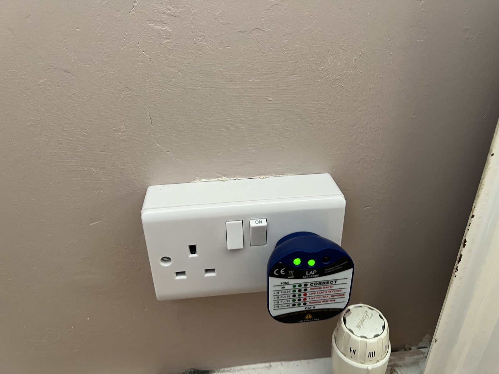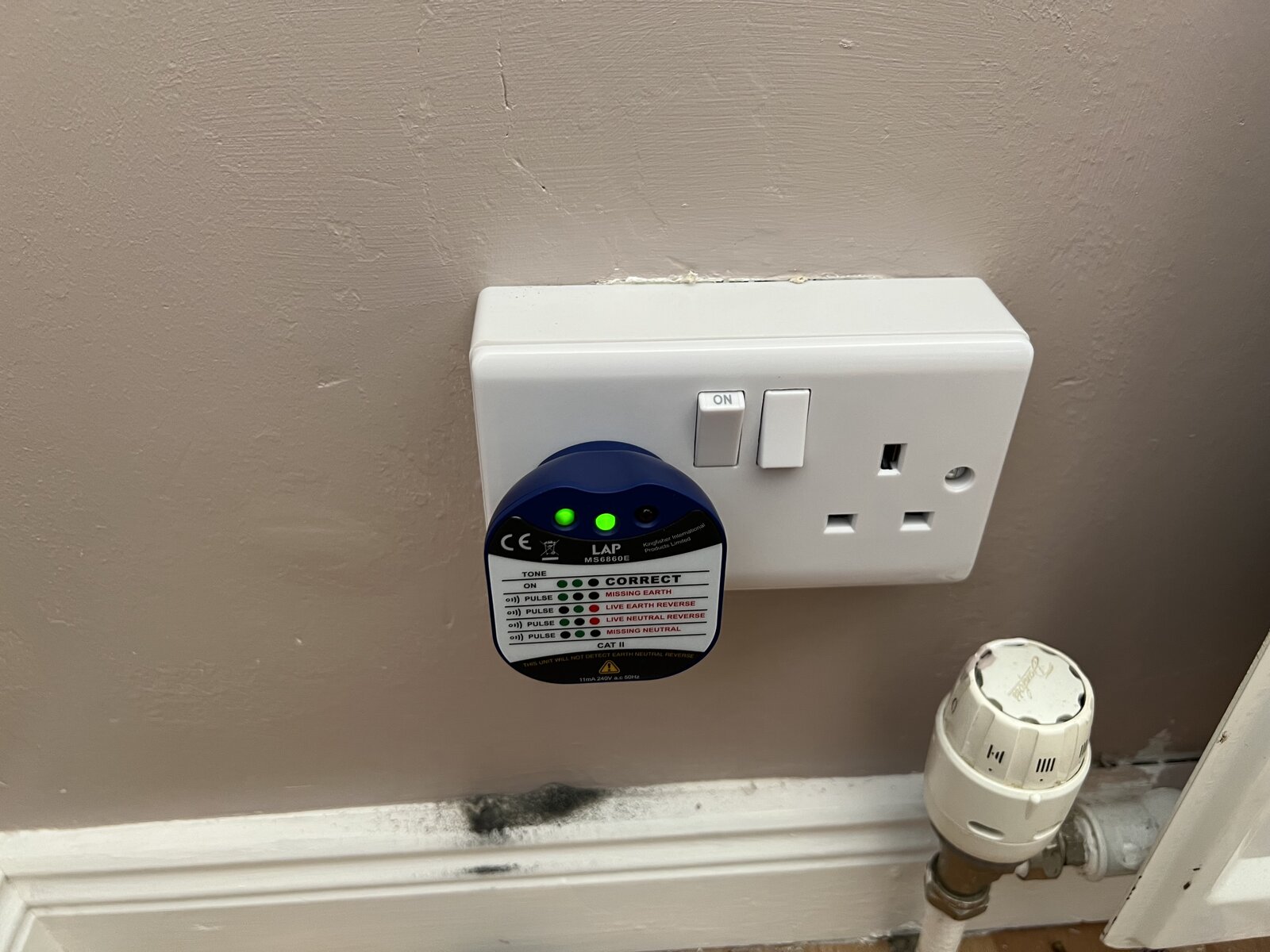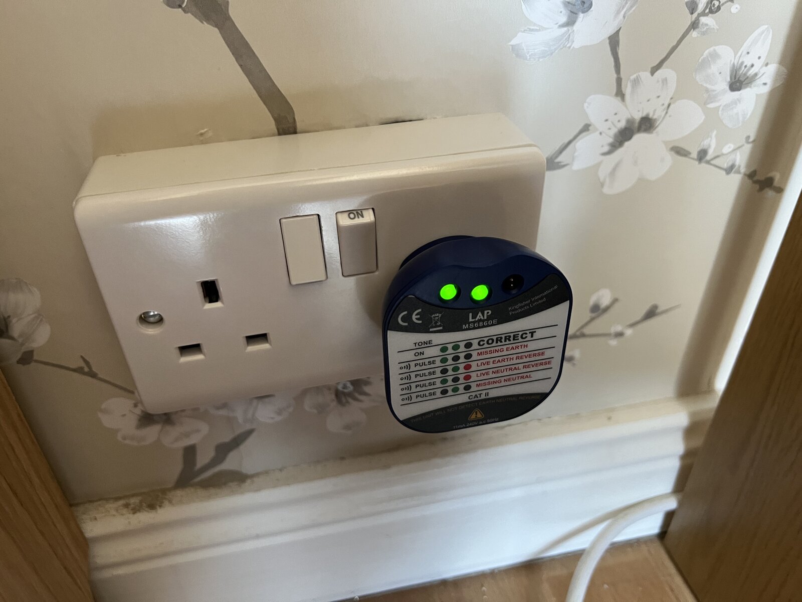 Used the socket tester to test it and got 2 greens and a steady tone, so all good!!!