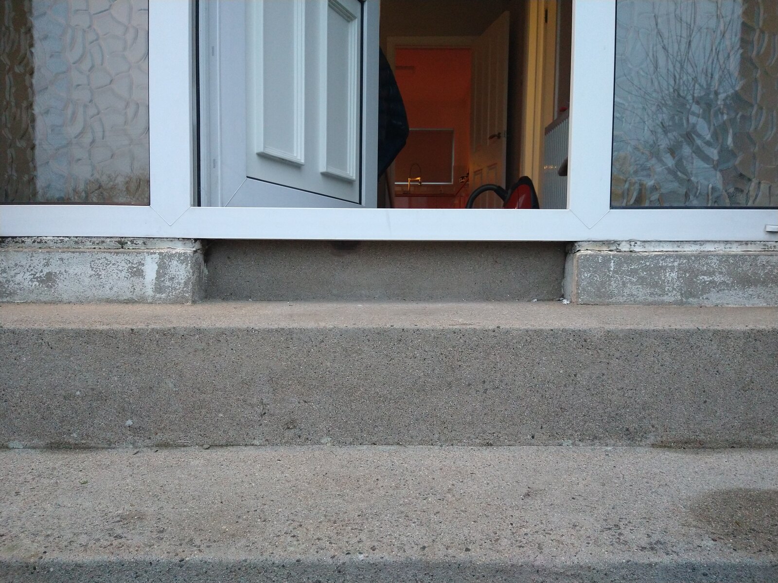 Basically I want to know if UPVC door/sidelights are suitable replacements and if so how they should be fitted. See photos for details. As you can see the floor has a raised central concrete plinth upon which the original door sat, which sits back from where the original sidelights would have sat. The unit I'm replacing was butted up against the door plinth and is only supported at the sides. The expanding foam is just a temp measure because there is so much flex in the unit, it leaks there, is difficult to open/close/and lock. Is a UPVC unit suitable for this situation, can it be adapted to suit or would I be best returning it to the original setup where I think the door would have sat slightly back from the sidelights? Many Thanks