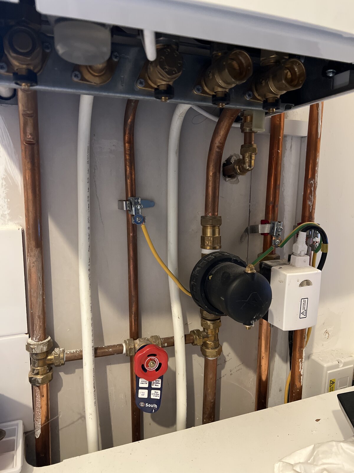 There is no filling loop in any of your pics ,and the plastic barrier pipe going to the boiler should really be in copper.