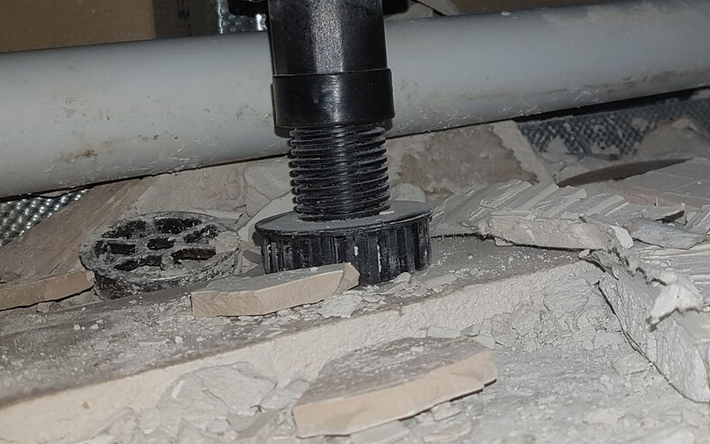 To boost its height the tray leg appears to be standing on plasterboard!Not the best of materials.