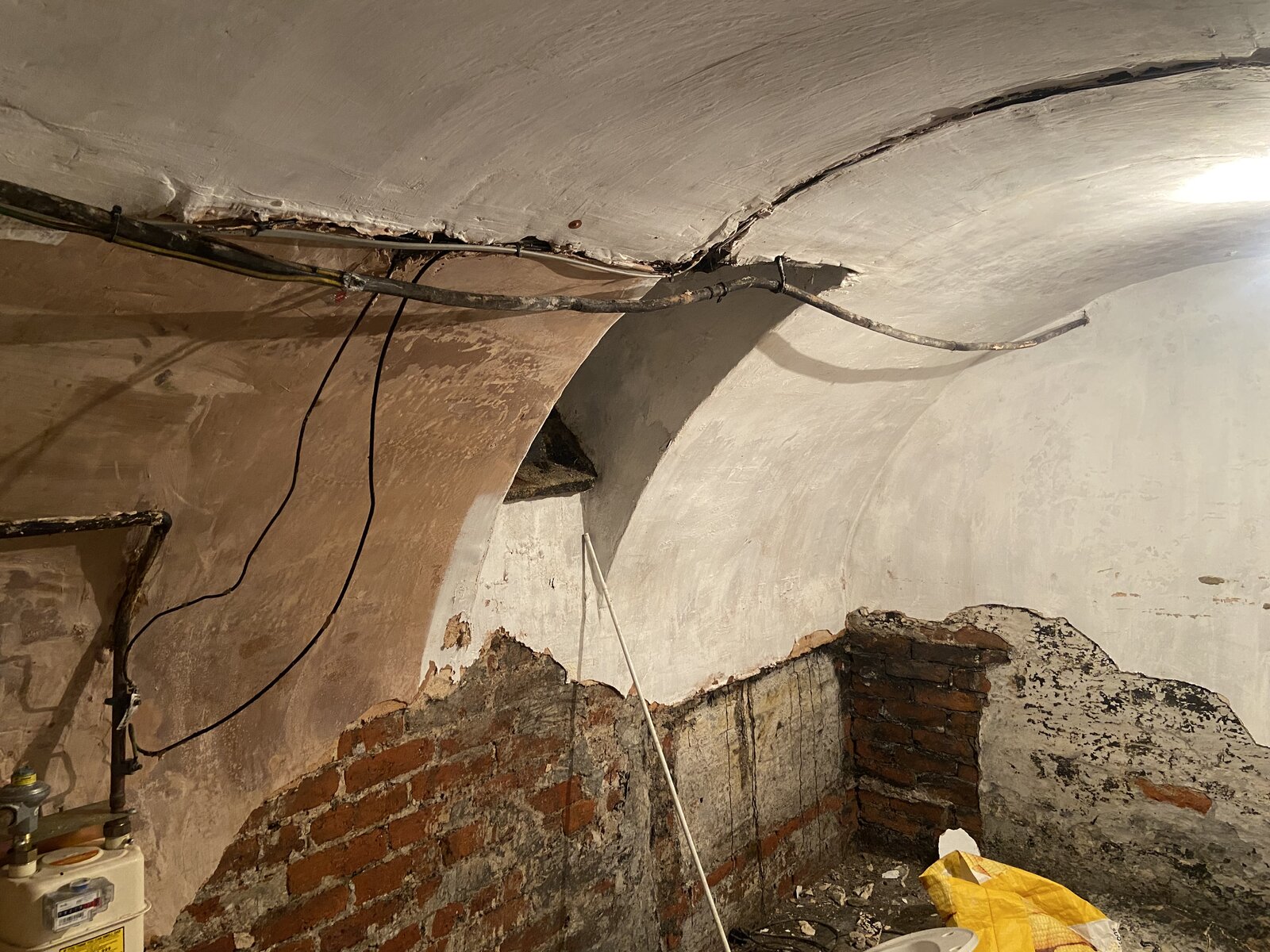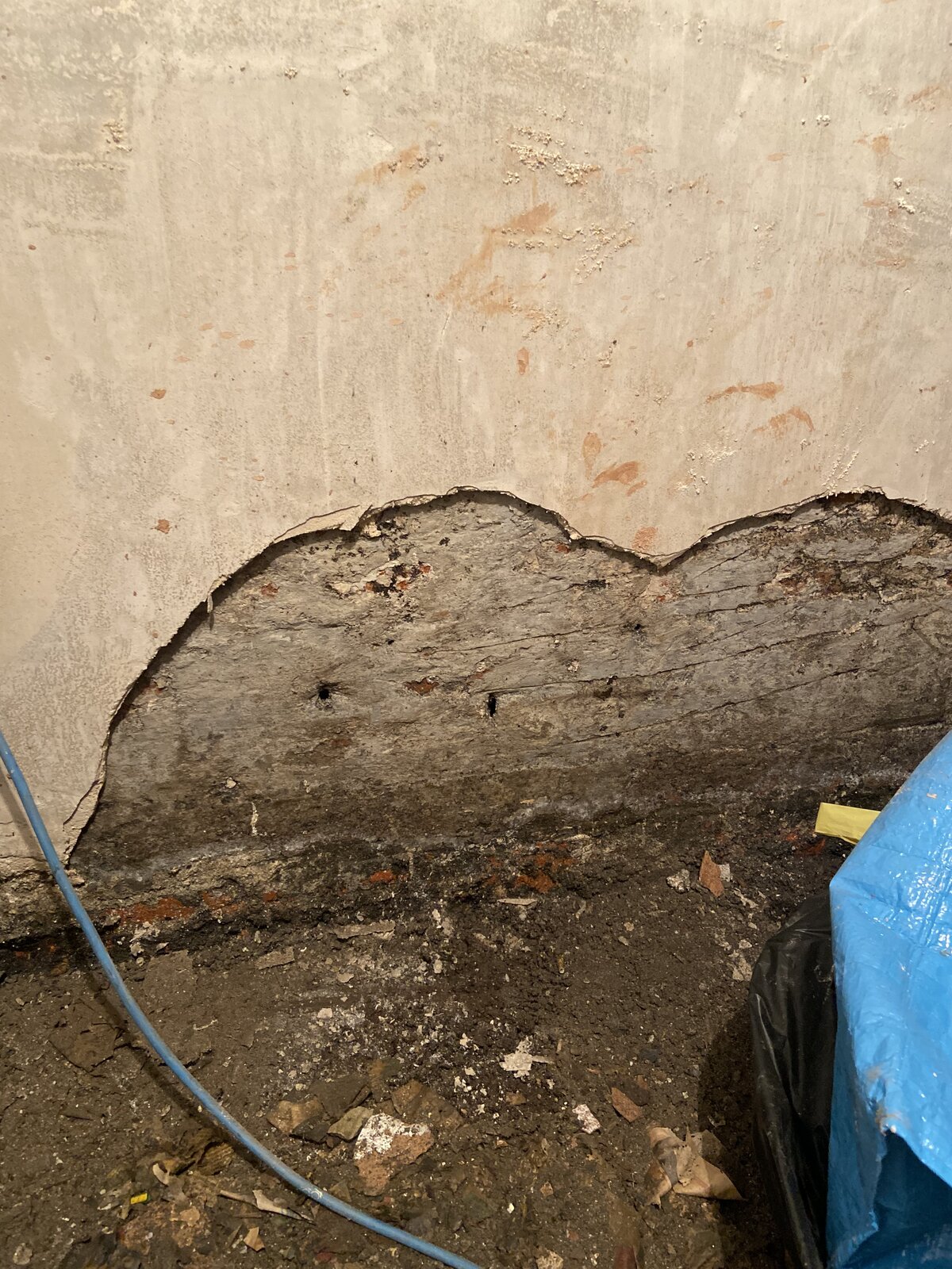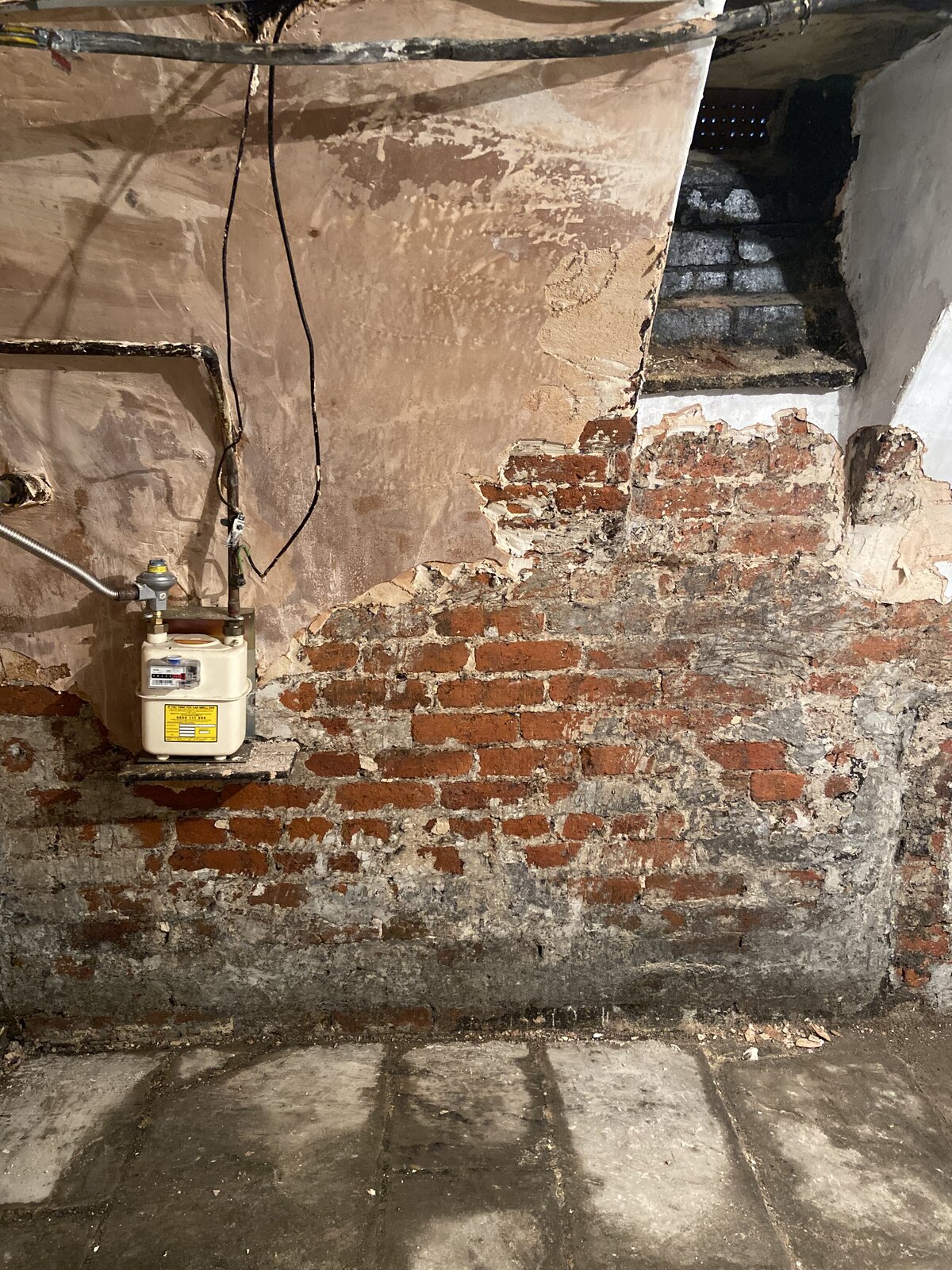 Some of the plaster had already blown so I thought I might as well knock it off. Just don’t want to do the whole cellar before getting some advice.