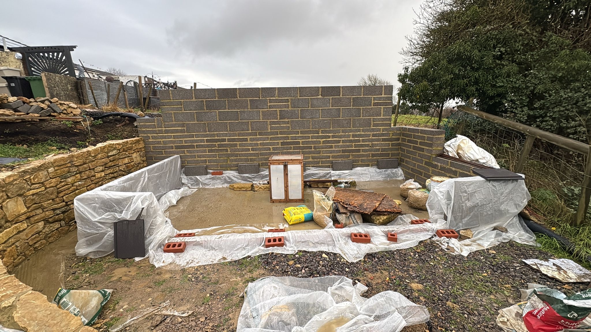 Built a retaining on top to hold back next doors field. The field slopes away from our boundary is about 1m high, we’ve installed a french drain and back filled with gravel. The wall is 5.5m long. Pics attached.