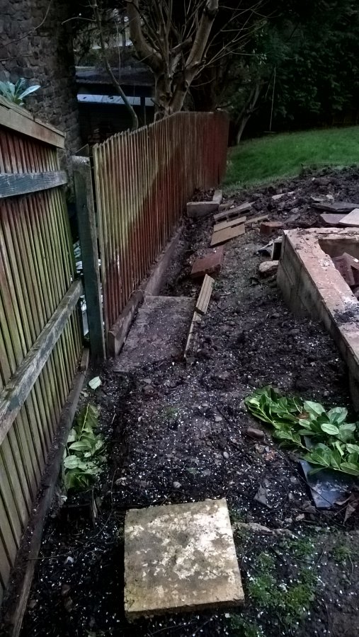 Anyway we're going to try and terrace the thing. First section up is where the pond used to be. I started digging a trench for foundations for the retaining wall.