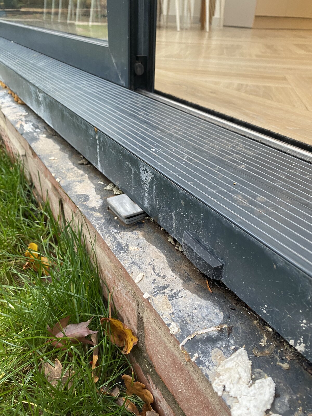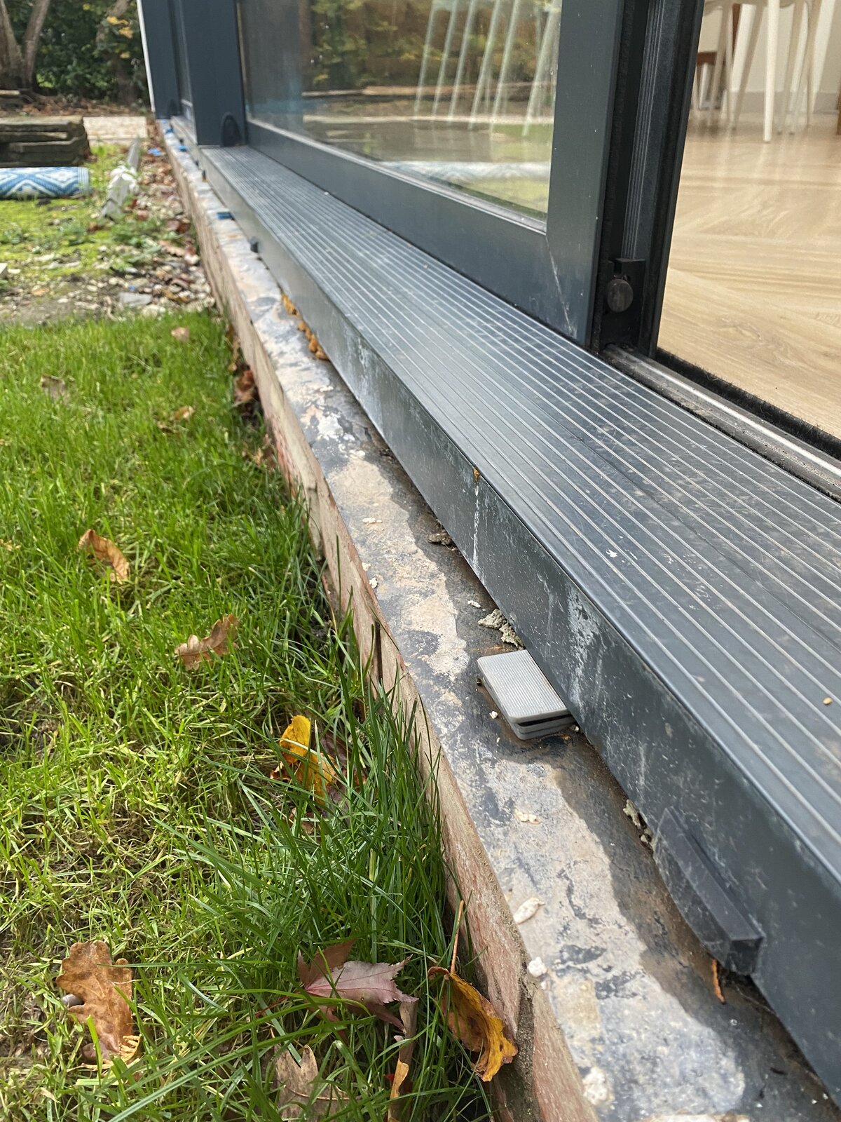 Hi, we had our sliding doors fitted a couple of years ago before we had issues with the builder that we were using. There is no sill beneath the doors which means there is a slight gap underneath which is packed. There is then a drop to the dpc and brickwork.