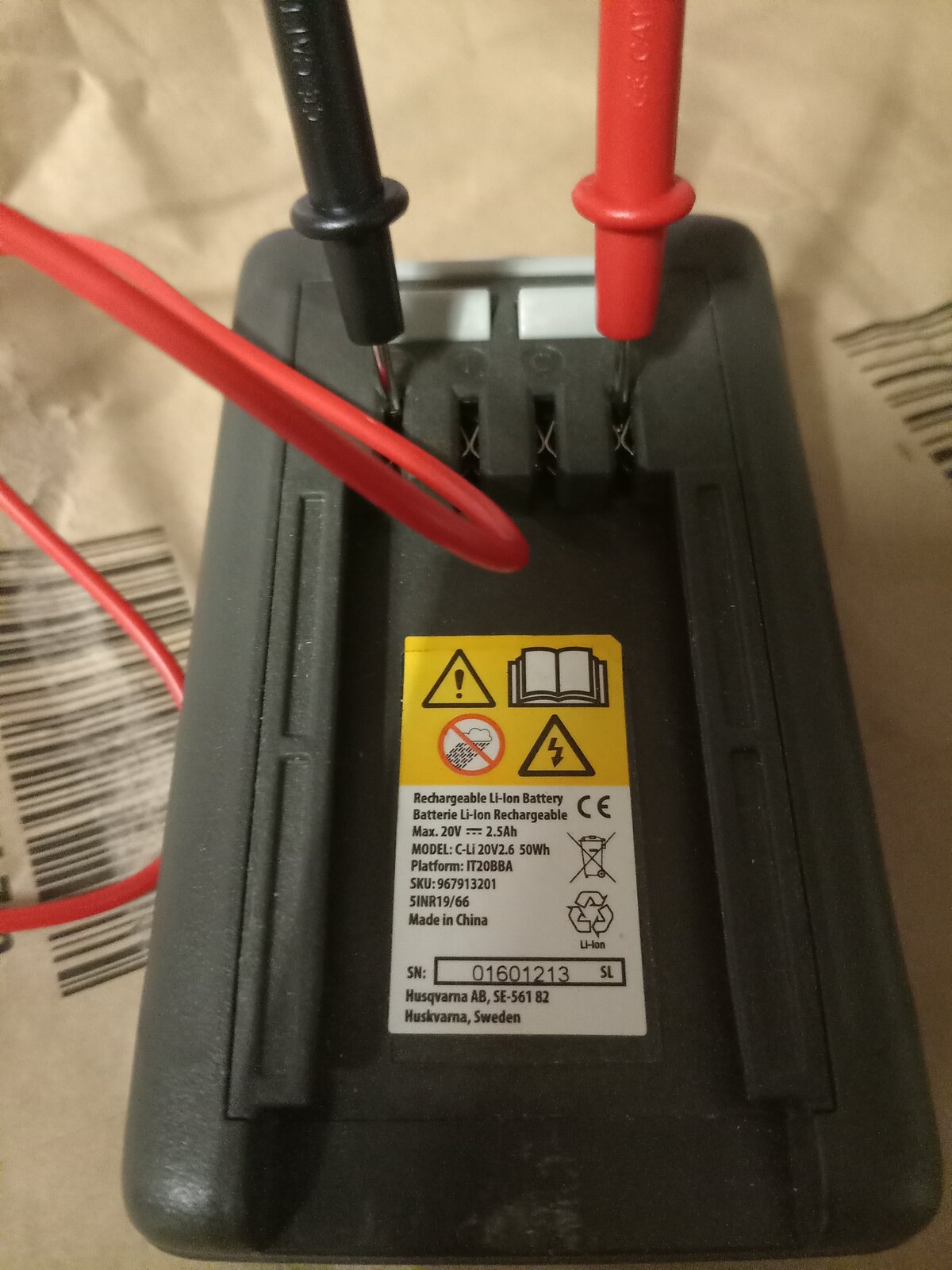 One battery is fine but the other won't charge. On a multimeter one is fine and the other is dead, multimeter is switching to ohms.