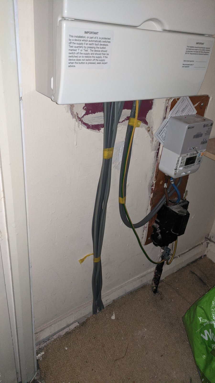 also bad, for a new installation to have the cables coming from the bottom open like that. Did you agree to that?, anyone with a bit of sense would have them boxed in - maybe even a large bit of plastic trunking.
