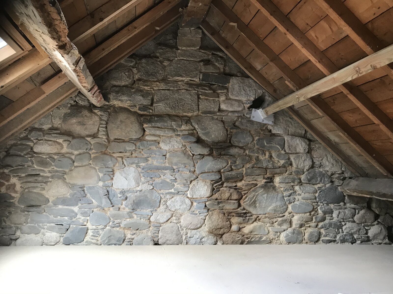 I have created a new mezzanine style floor out of 8x3 joists all bolted into a granite wall with 150 mm anchor bolts where one bedroom used to be and the other side I am having vaulted with a small spiral staircase leading to the bedroom.