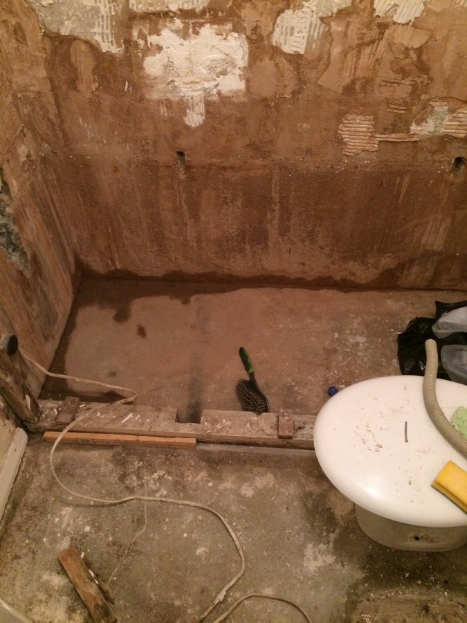 I'm redecorating my bathroom and after removing the tiles and bath have discovered what seems to be a rising damp problem. The tiles fell off without much effort, which I believe is due to the damp rising up the wall and affecting the adhesive.