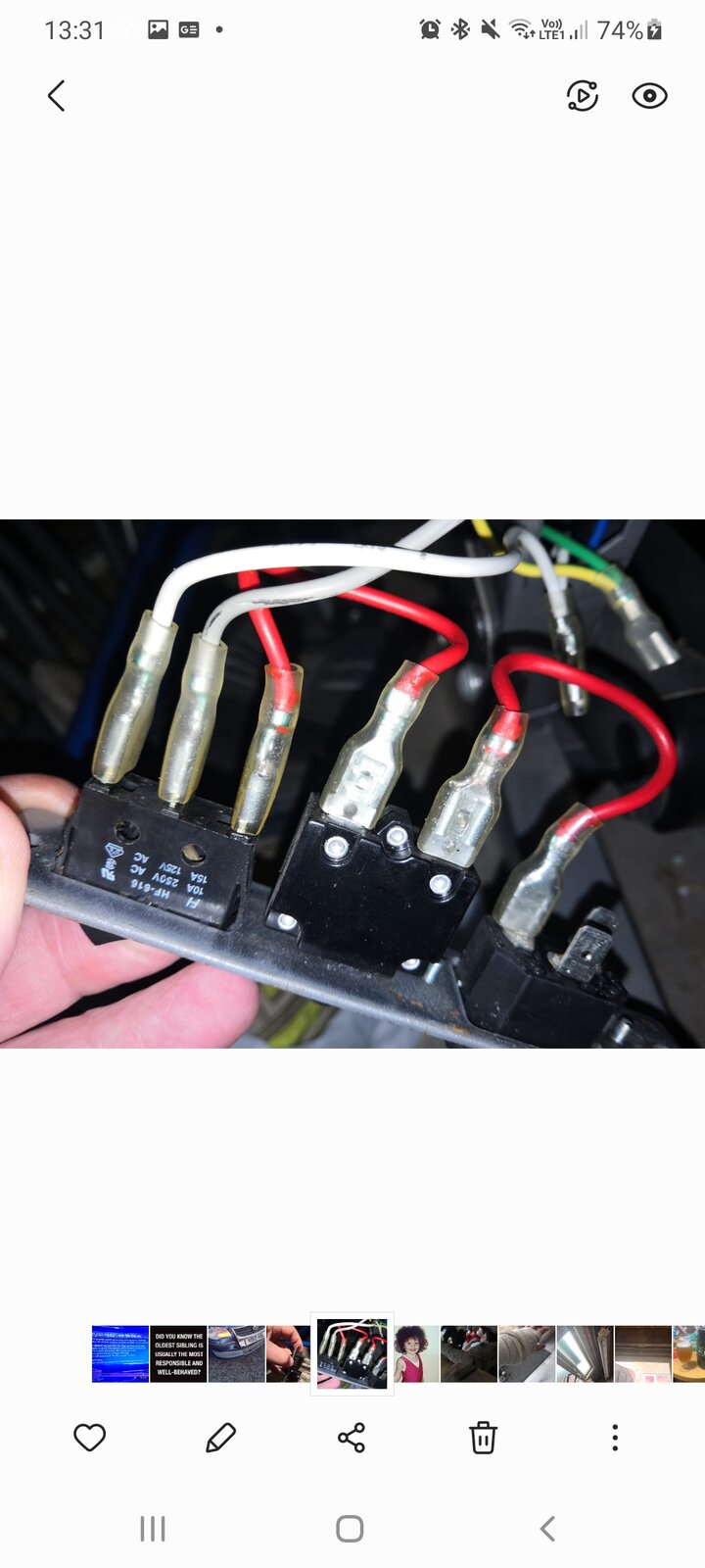 2 of the connectors had come away from the terminal so I connected them and tried it. Popped the breaker as soon as I press the switch.