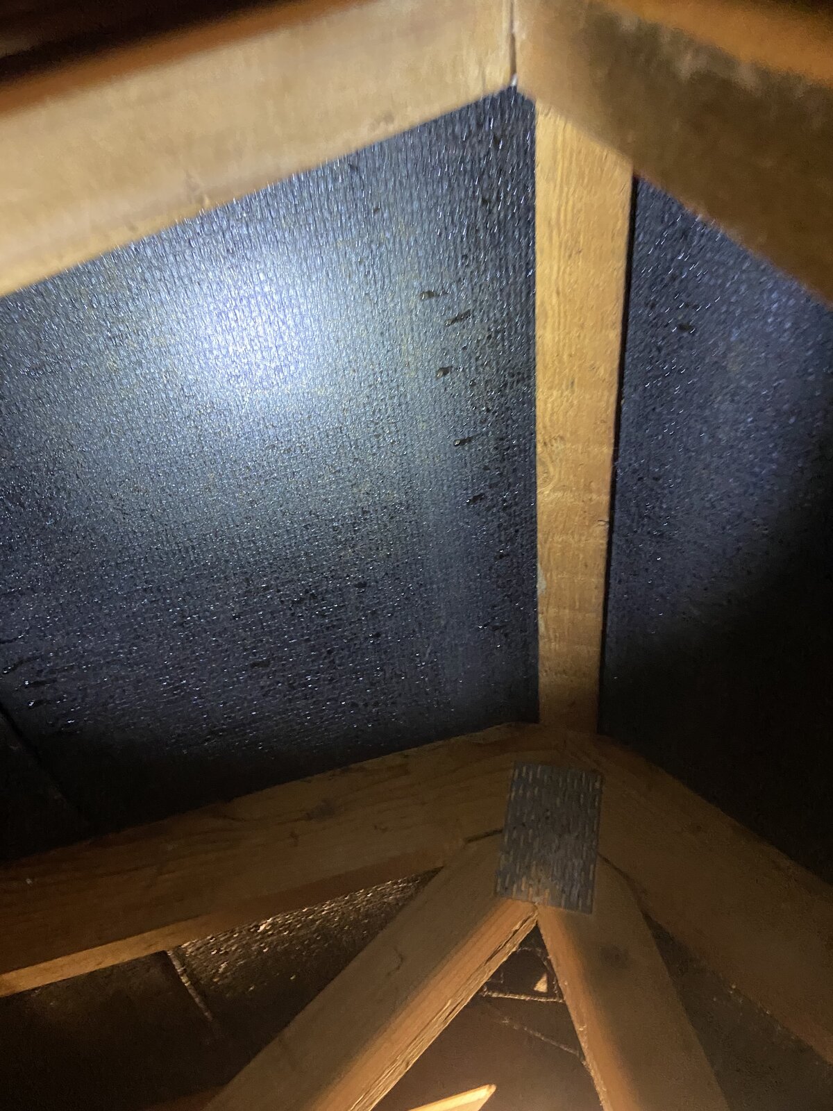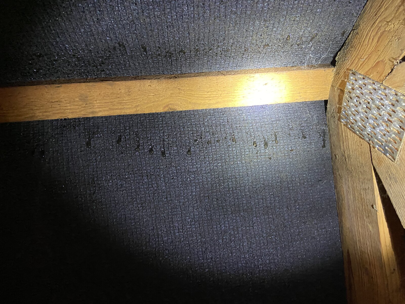 Belated happy New Year. I know it’s that time of the year for loft condensation, particularly around hatch area. We’ve had that before but worried this is more symptomatic of a leak. Photos attached. The “leak” is mainly on one side of the loft where the first felt overlap is. Also a bit near apex of roof.