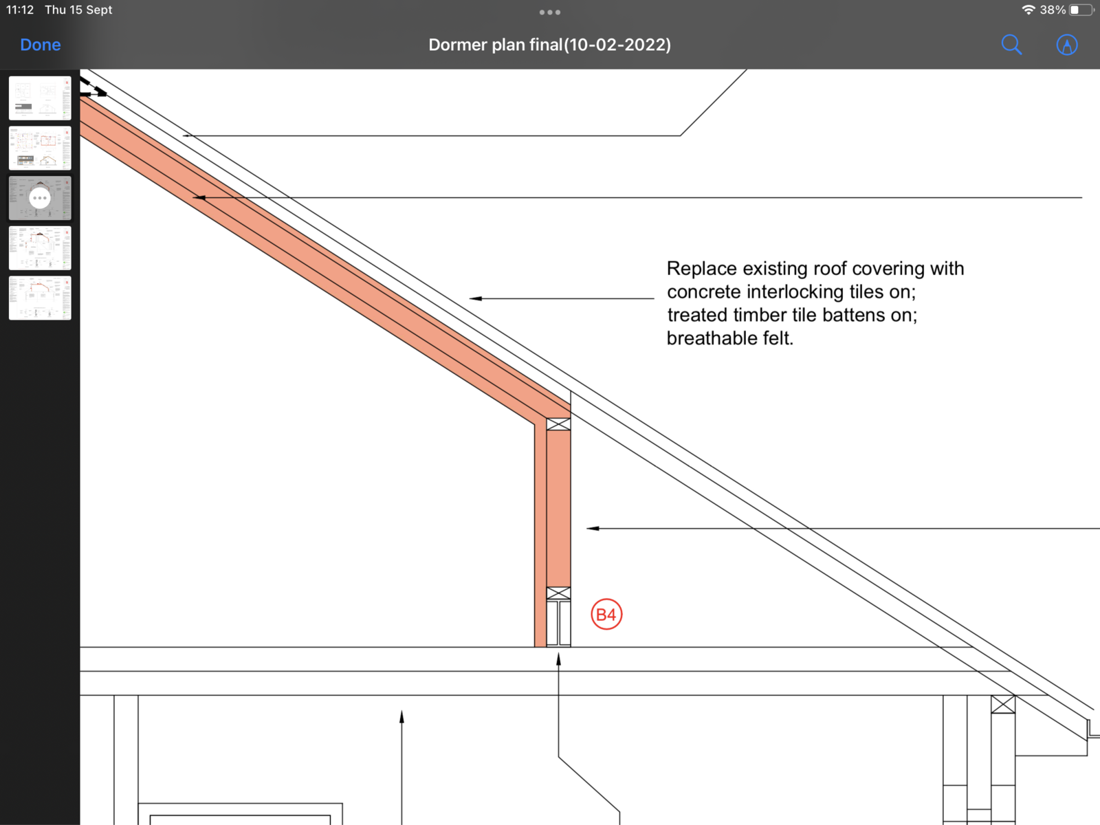 Roof rafters for dormer conversion.