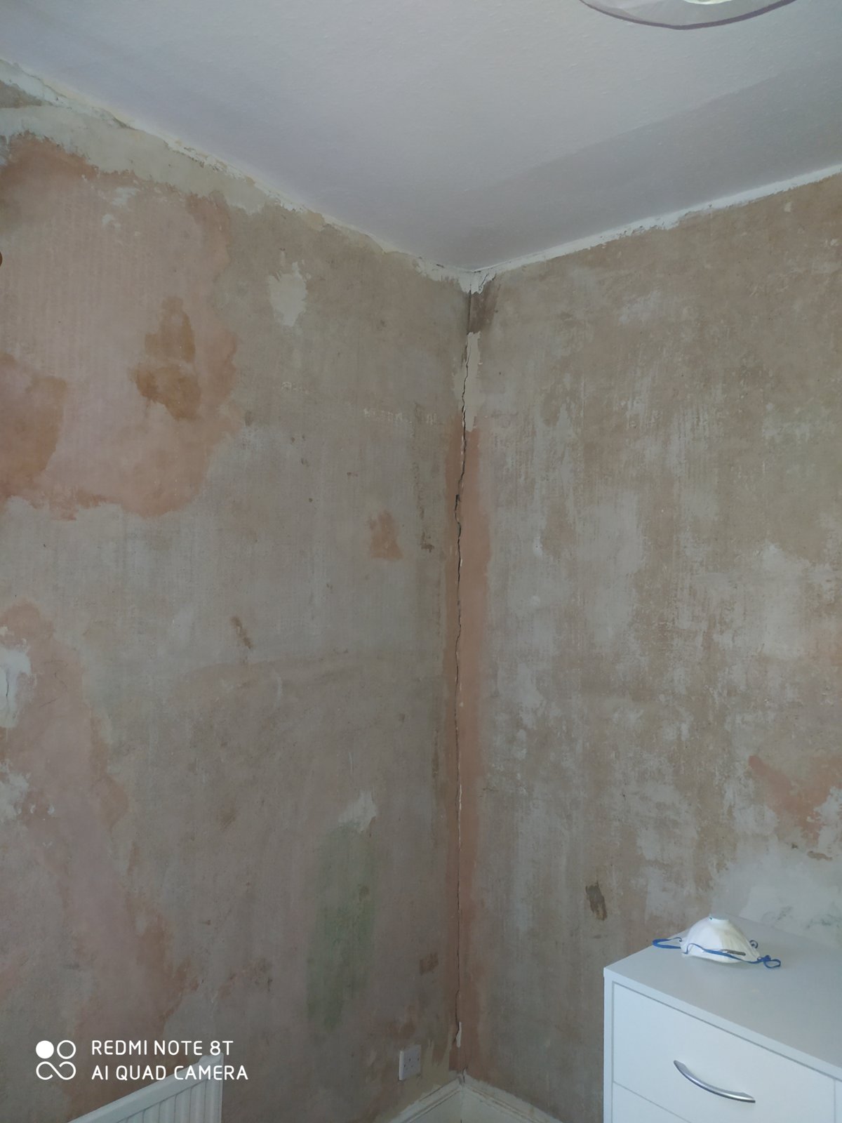I purchased a 2 bed Victorian terrace last year and I am just getting around to decorating the upstairs. Having stripped through what seemed about 10 layers on wallpaper I have uncovered this very large vertical crack in the corner of the room. The bathroom is adjoining and there are some hair line cracks above the doorway. There also appears to have had some sort of movement around the doorframe itself. I of course will be getting the advice of a structural engineer but in the mean time does anyone have any advice? I have attached some photos which I hope are helpful.