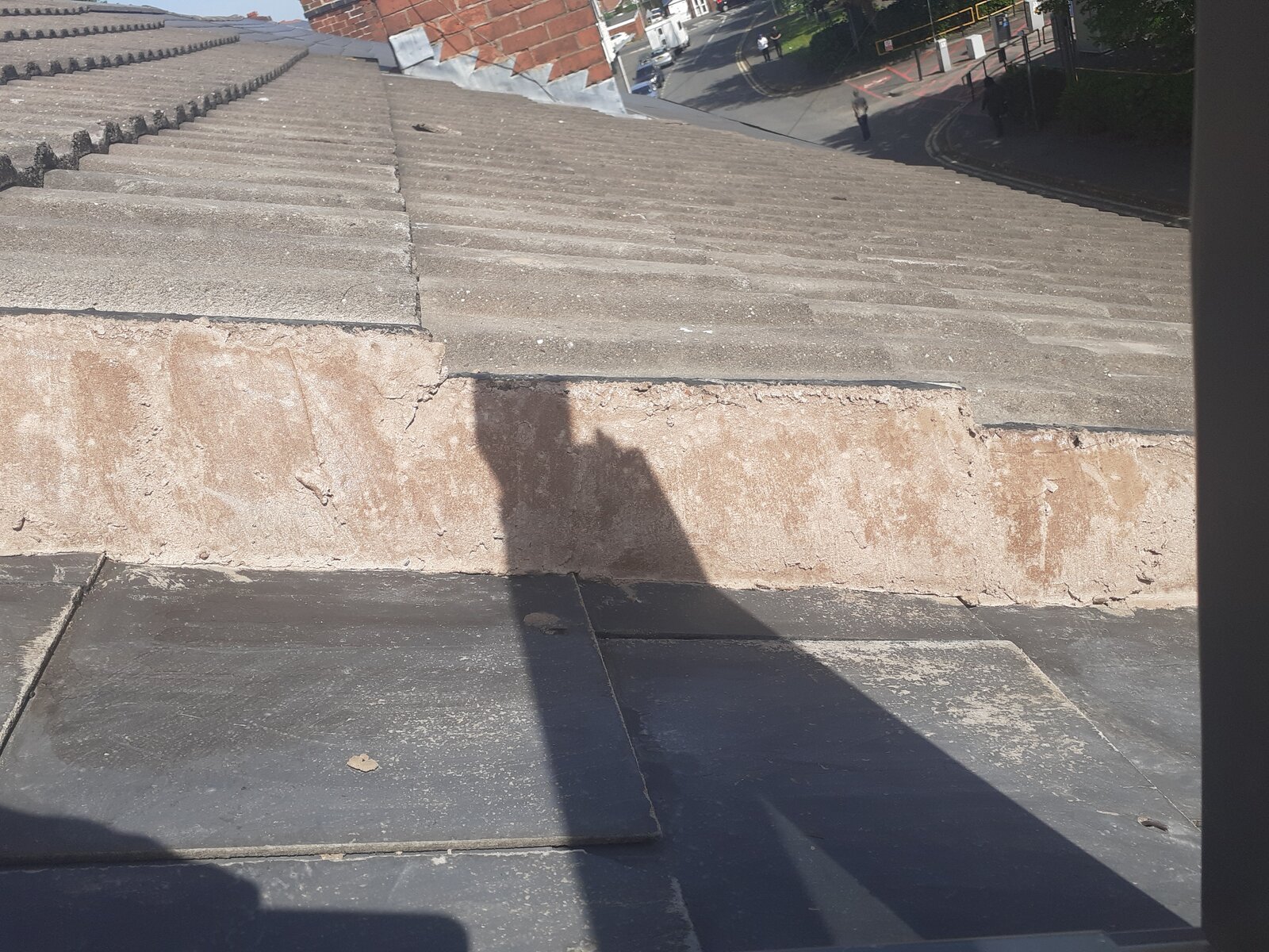 Now we ask for photo of how the roof was before the work begin, they said they do not have any. These are all the photo we have, the material they used was sharp sand mortar mix and they could not provide the product name.