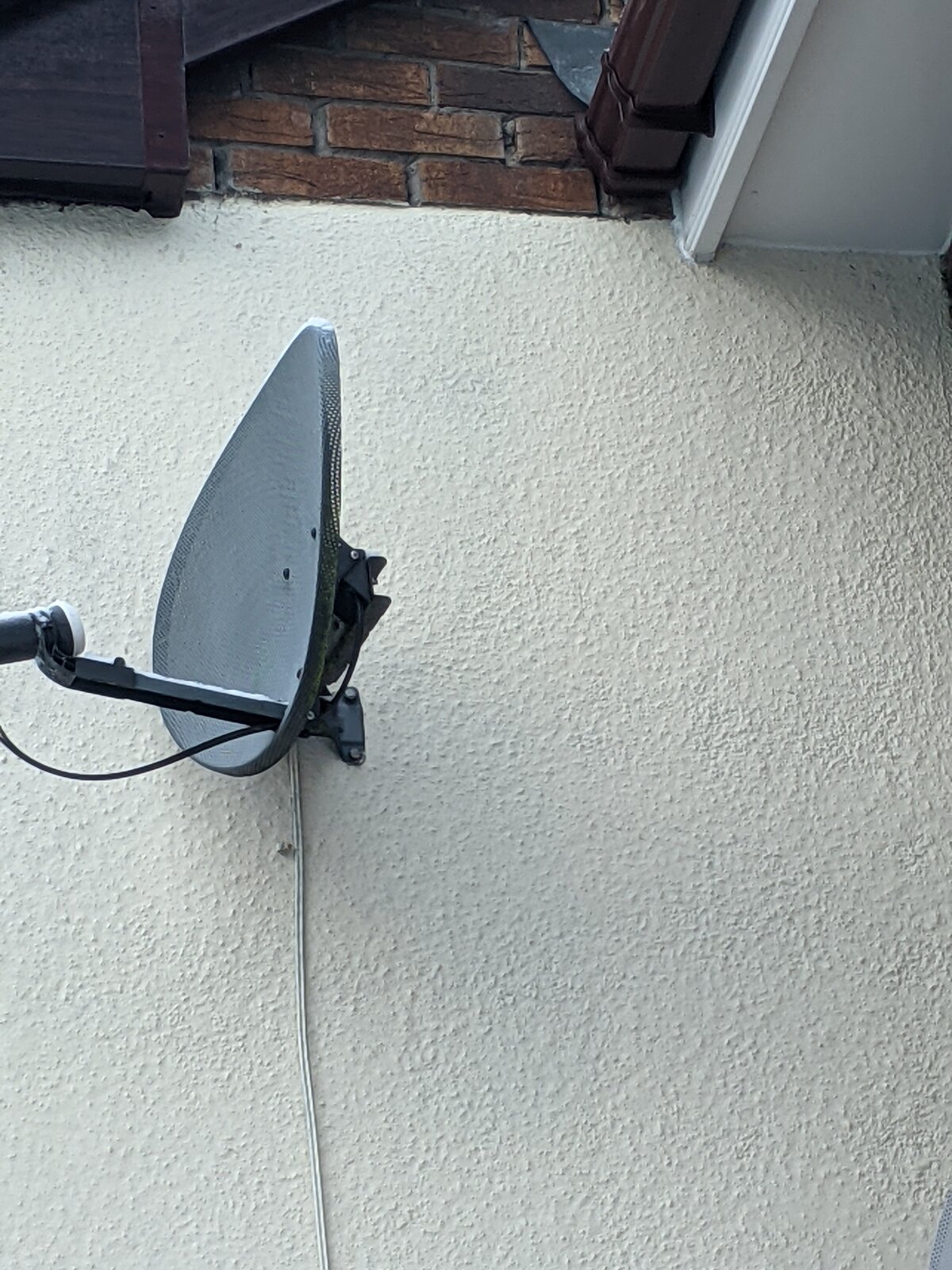 The property is an 1980s built house which is half brick/half rendering and this damp is about half way up the rendered part of the wall and half way across it.