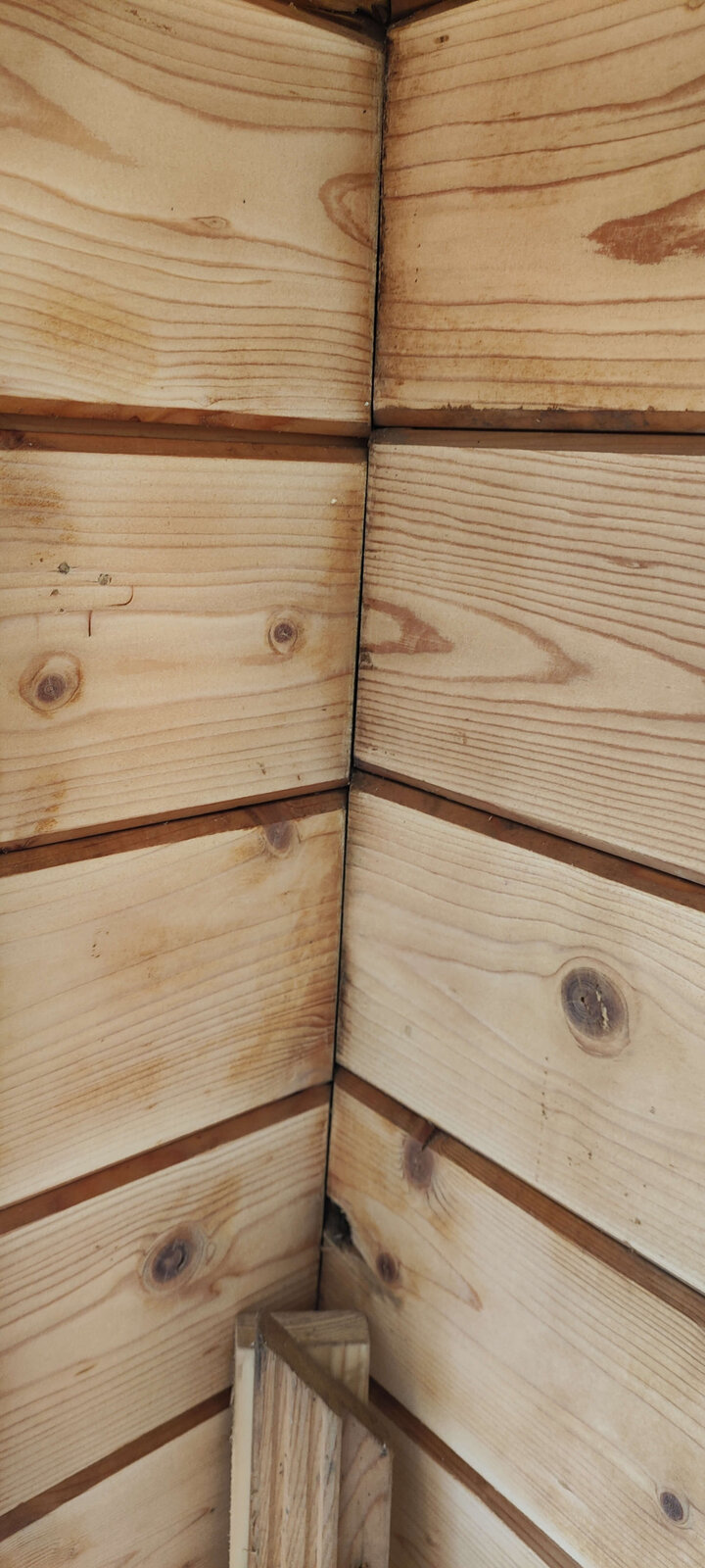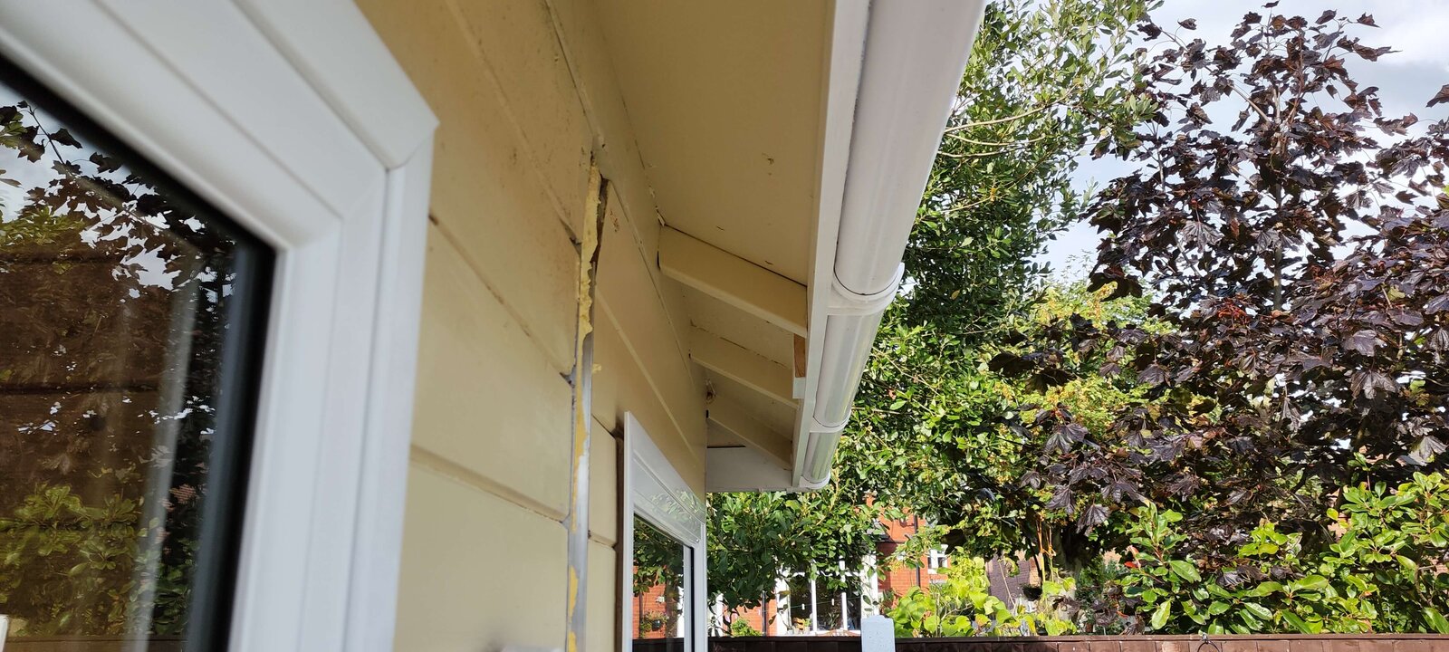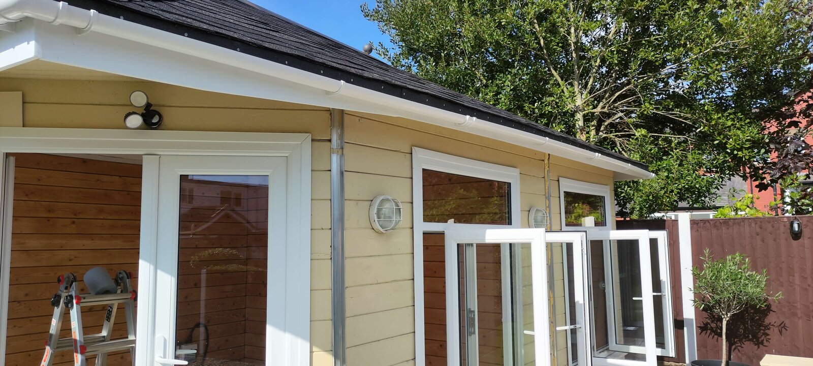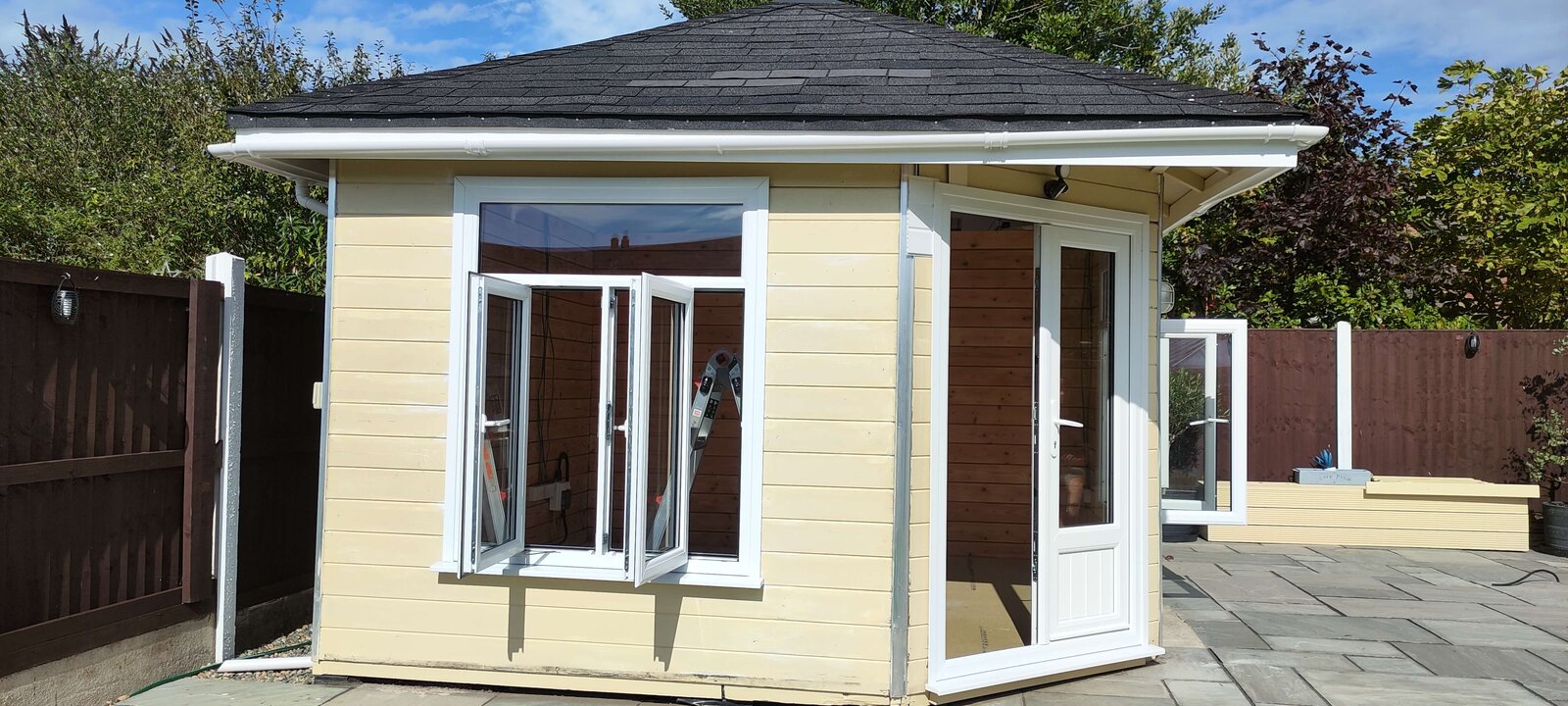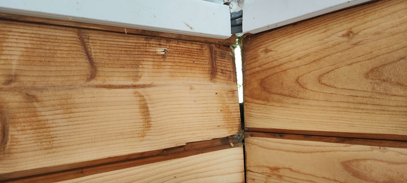 Today, I also pulled down 3 pieces of the inside hardboard on the ceiling. I painted it yesterday and this morning there were evident signs that it leaked overnight as the hardboard was stained. And one final note, in each place I pulled the hardboard off there were signs of black mold on the wooden roof backing, quite a bit in fact and that worries me. They've a child who is nearly 2 and in and out of the summer house..