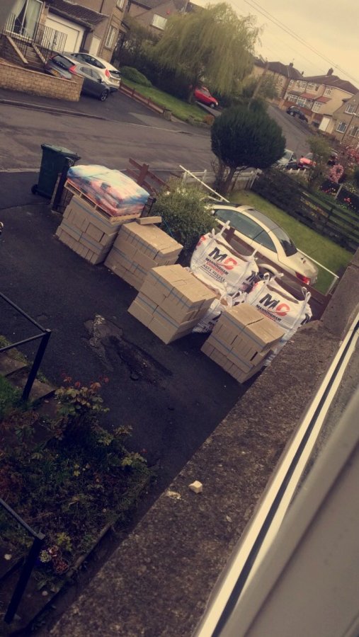 4) using 3 catnic lintels one above window, one above side door and on above large front garage door.
