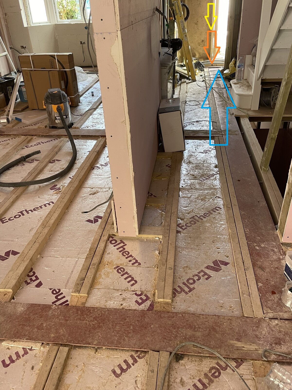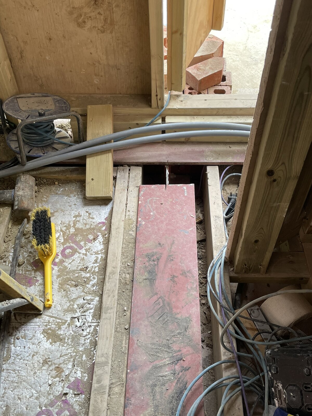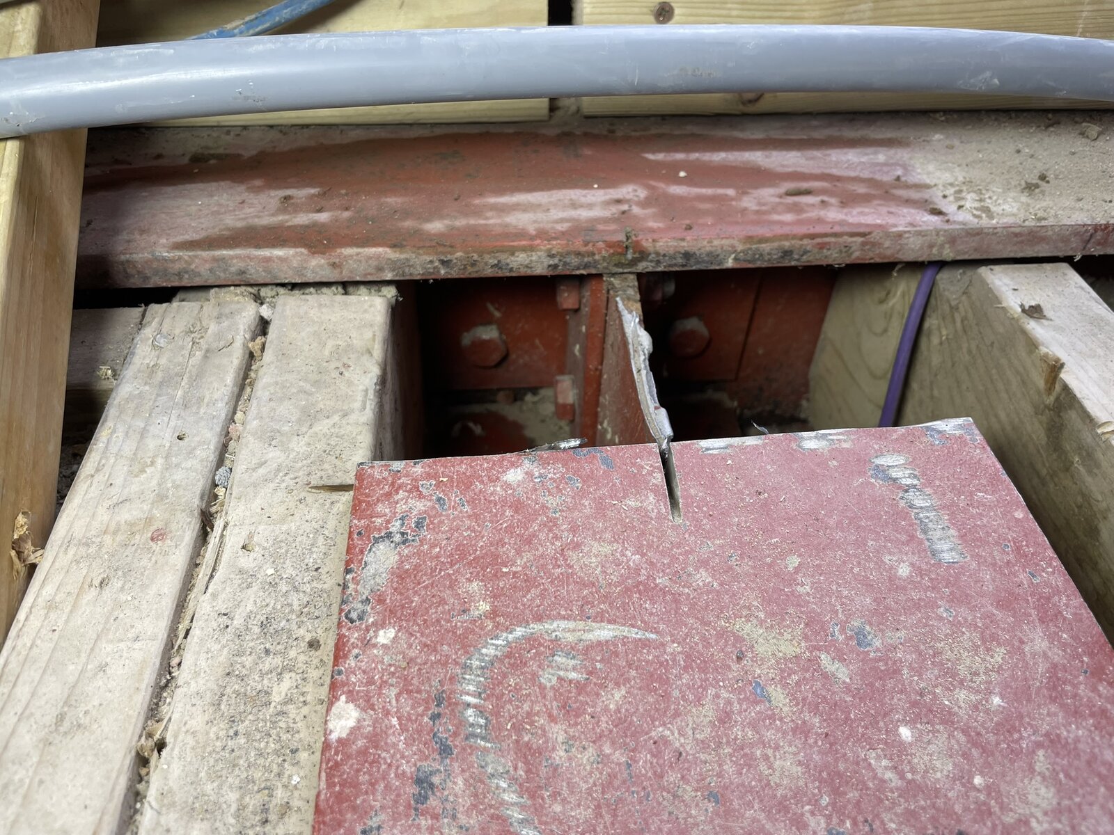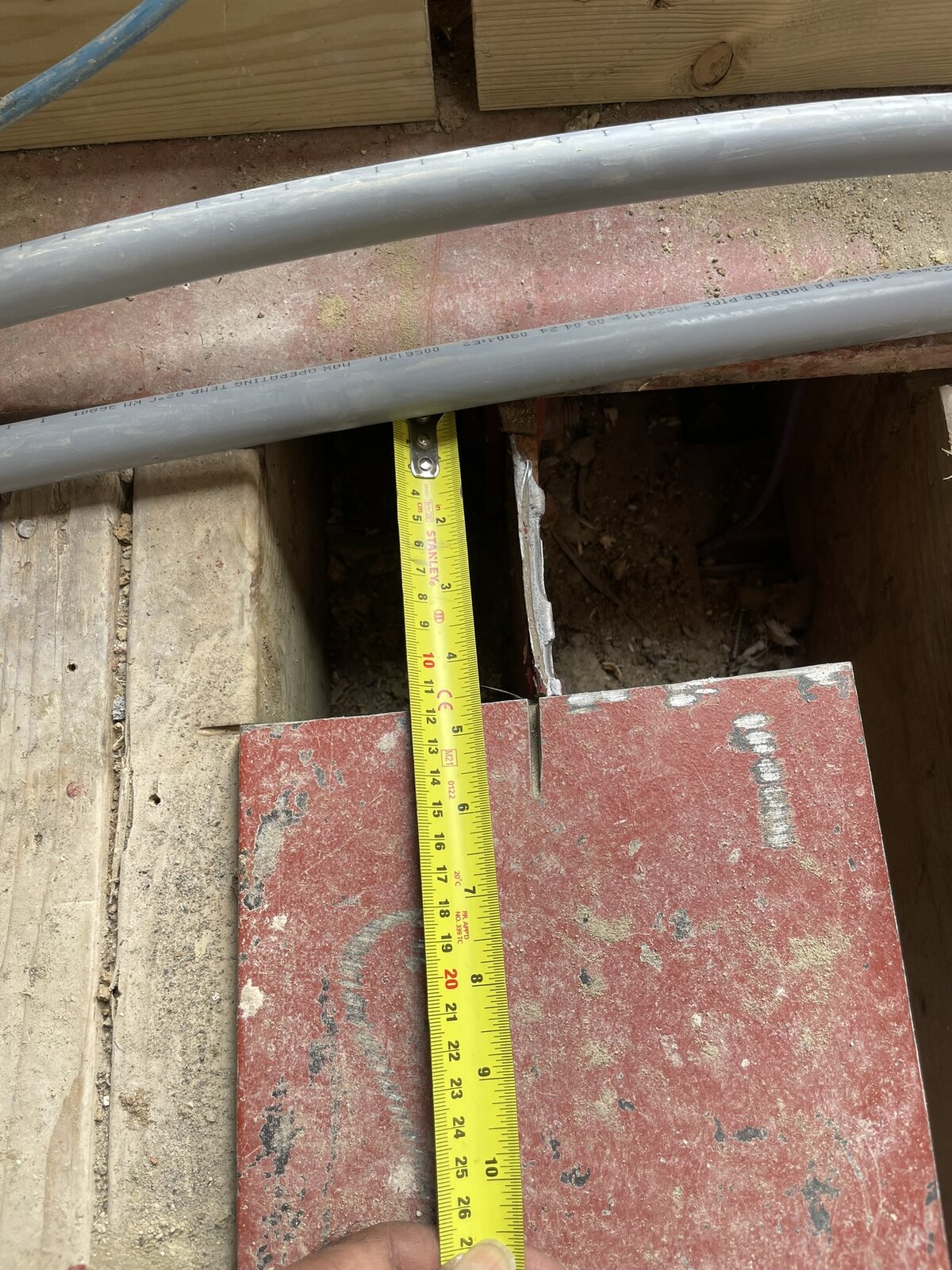 The plumber needed to route an underfloor heating pipe.
