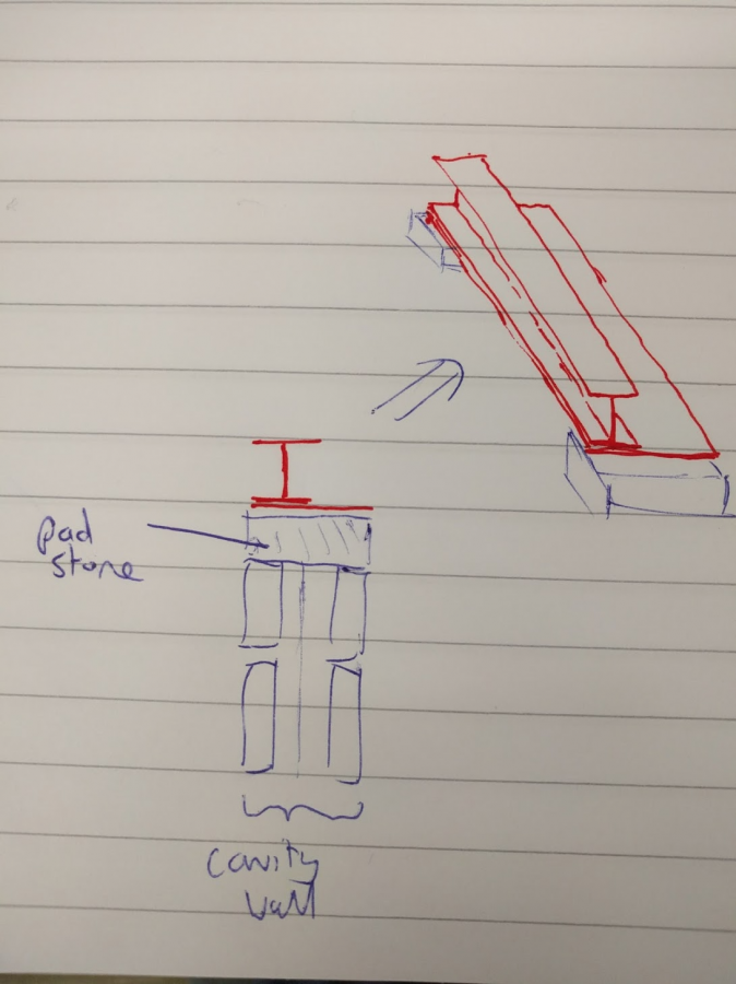 For background At the moment it's welded to a 300mm wide full length plate which is sitting on concrete pad stones that bridge the cavity.