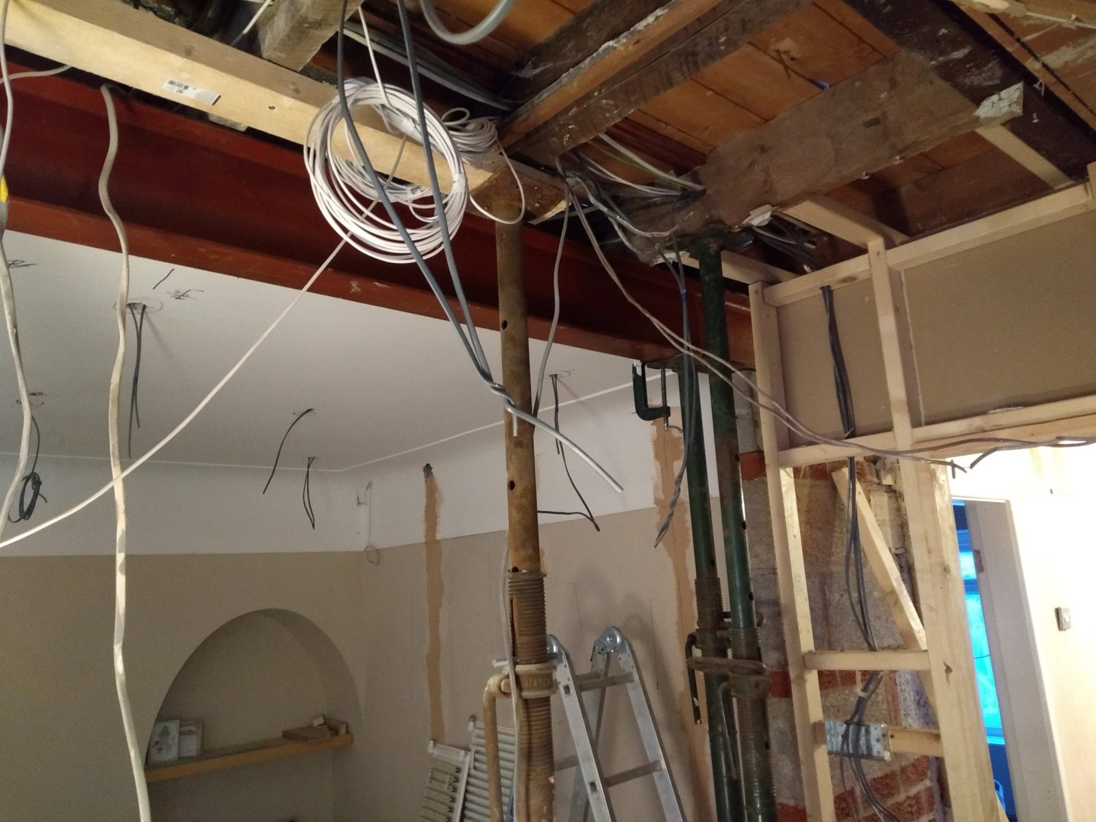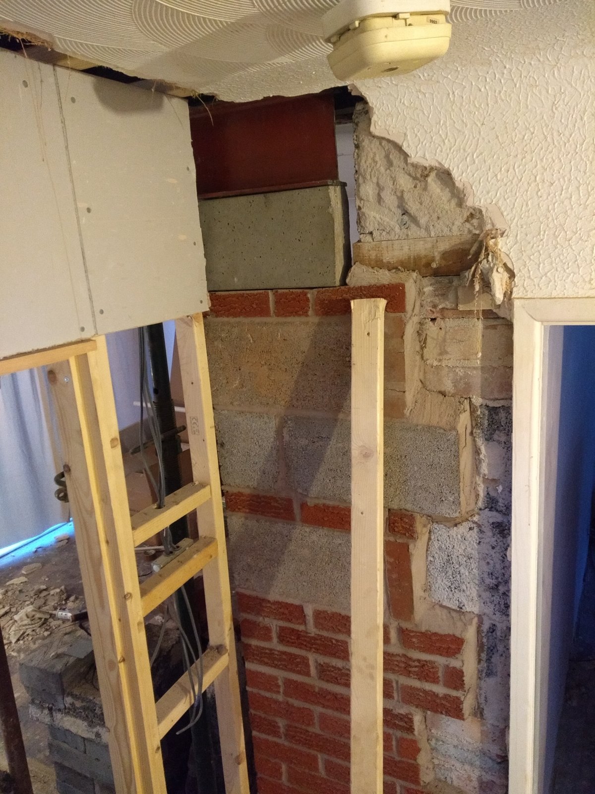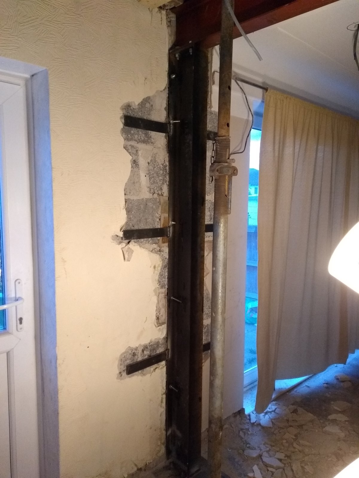 Hi I've done knock through to kitchen diner . I got a building regs fella to go through job with me . He came up with idea of using a 178x102 vertical post as he said a windpost. This is then bolted to a 203x102 which runs 3m and is under the floor joists which hold up wall in bedroom an in loft has 2blocks on top which roof beam sits on. I've had people come in an say never seen anything like that. A builder who does knock throughs has said he will take it down an put rsj straight into wall on padstone which only has 100mm bearing then . Wondering if that is enough to hold the weight above . Also above big pier I have some cracking . Could do with some advice on this. Thank you