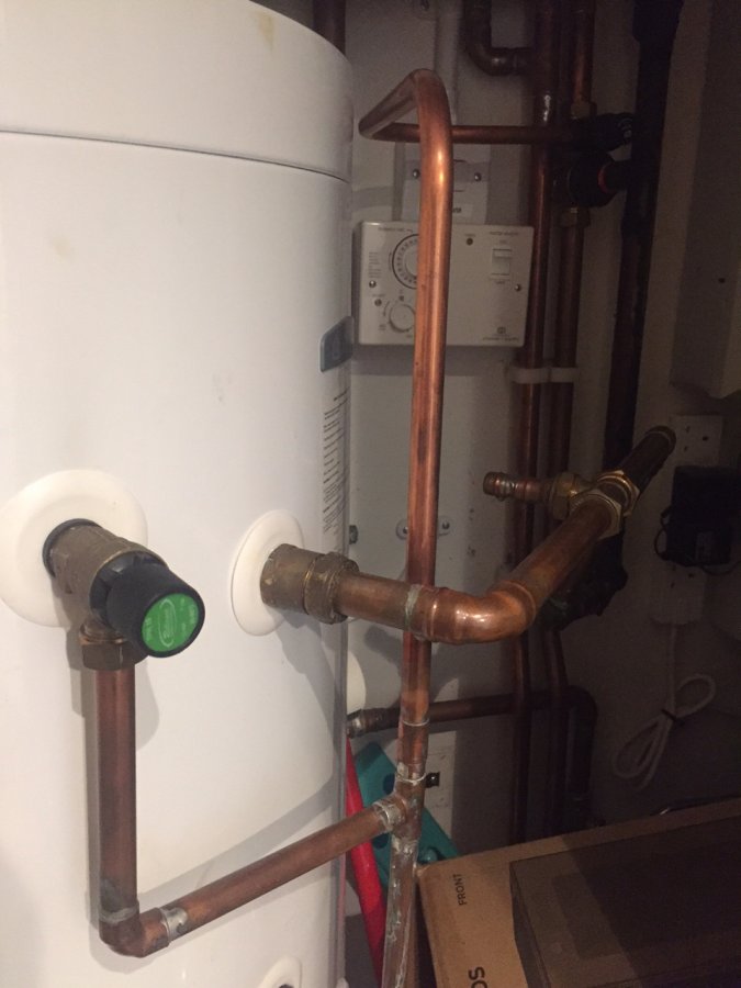 I thought that there could be some air inside and looked for an air release valve but not really knowing much about plumbing I couldn’t find it. the following morning the noise had not stopped so I contacted my landlord, who would send a plumber. I then emptied the cupboard where the tank is and in doing so I found what I deemed being the air realise valve I was looking for. I opened it and indeed a lot of air came out of it but the gurgling sound didn’t entirely stop. I switched it off and the noise went on, so I switched it on again and I went to work. A few hours later, when I came home for letting the plumber in the sound had stopped entirely. I explained to the plumber what I had done and I left to go back to the office while he was completing his assessment.