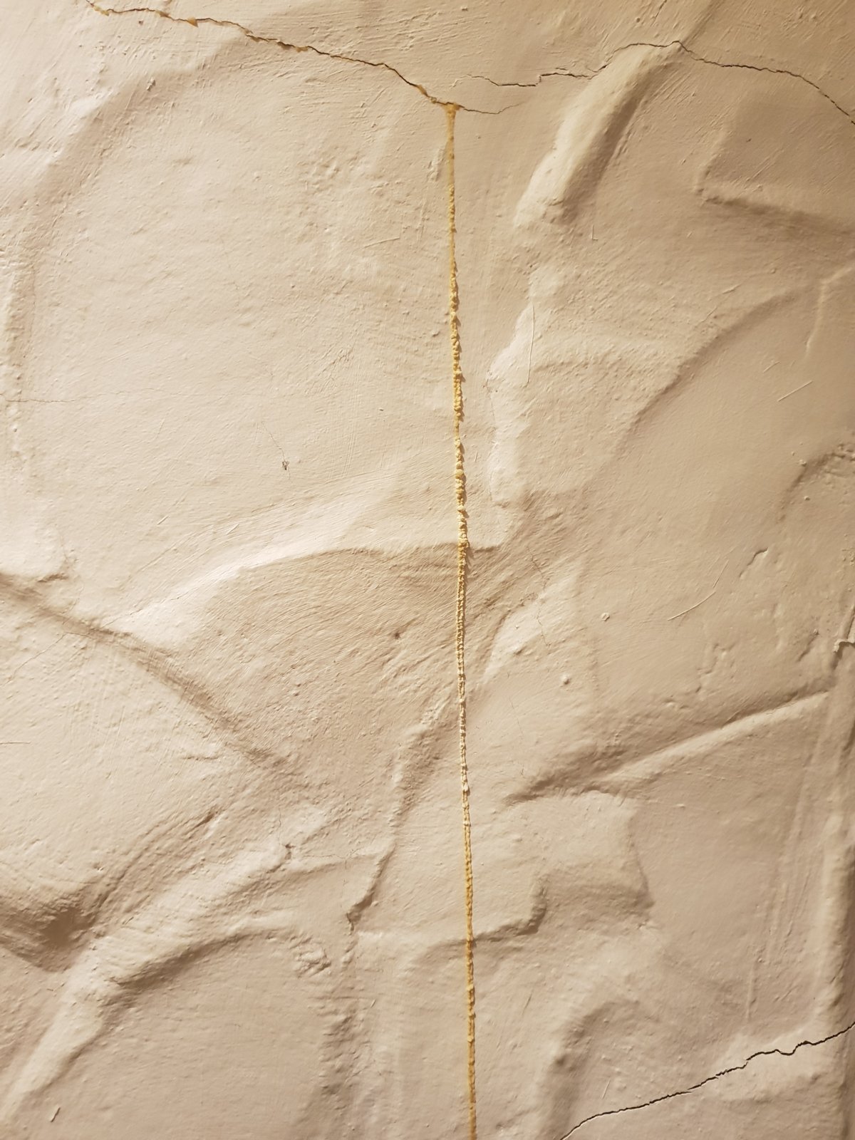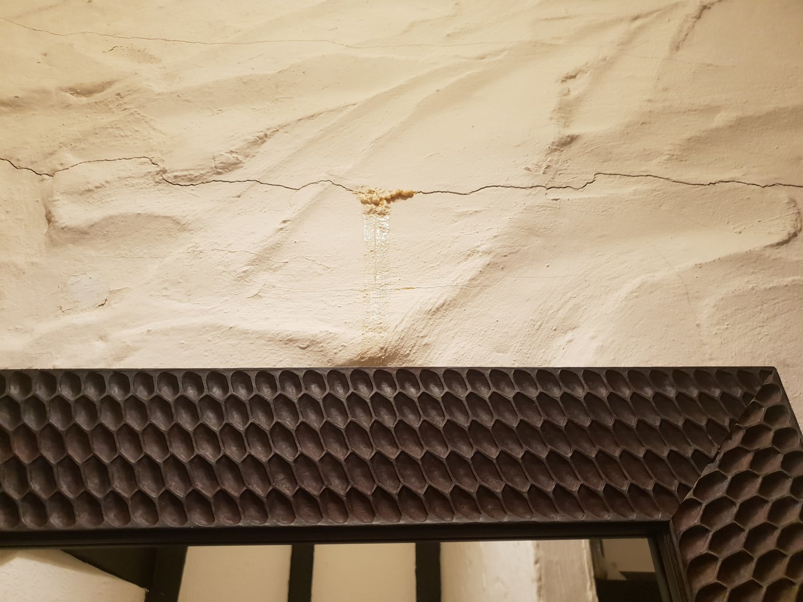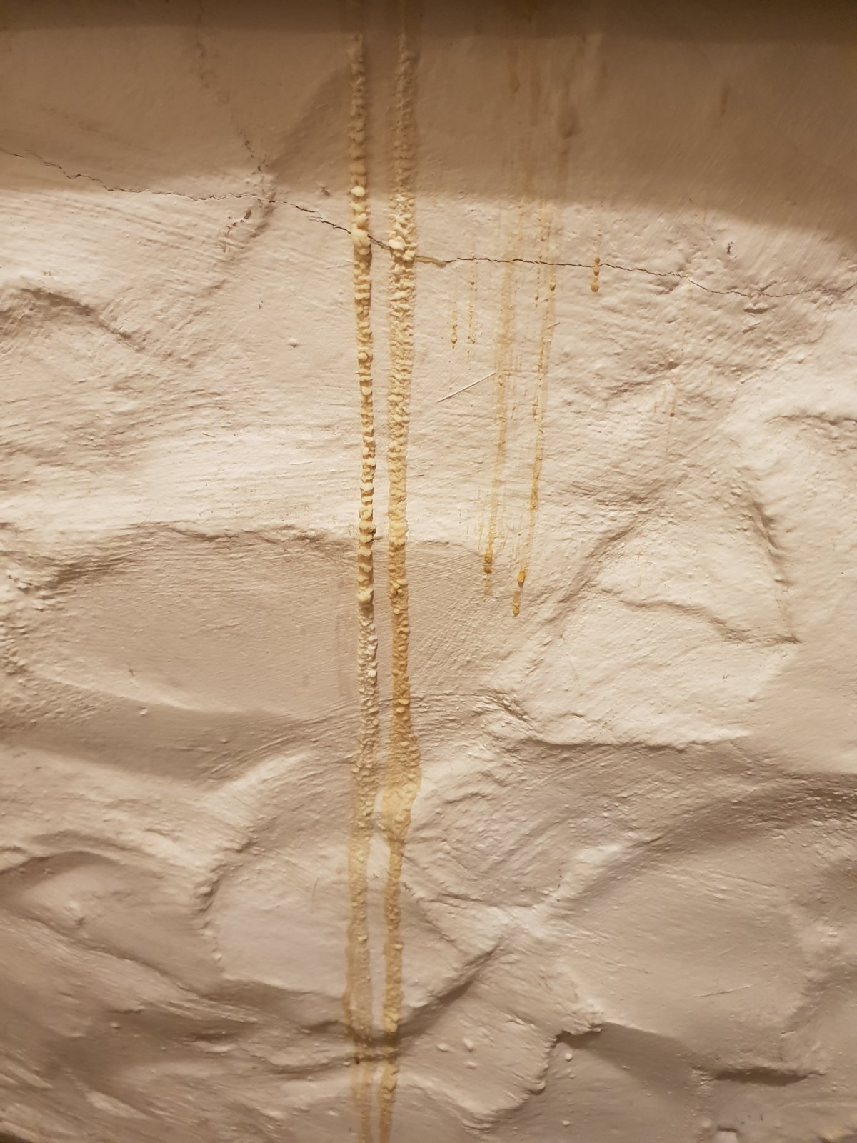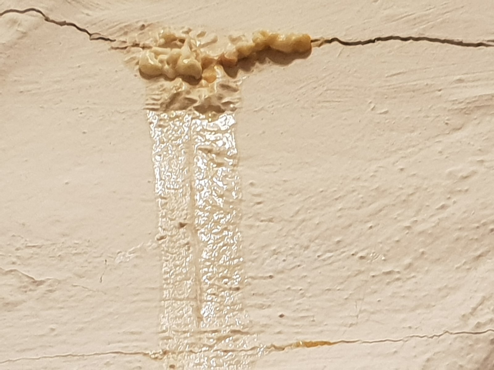 I've been away from my property for some time so it has built up. It seems to be salt deposits that have dripped down the wall from some pretty bad cracks. Not sure if I should just clean up and re-plaster, or if it needs a more thorough job.