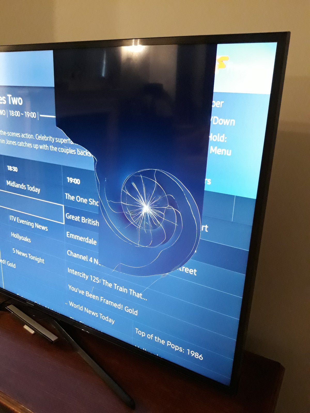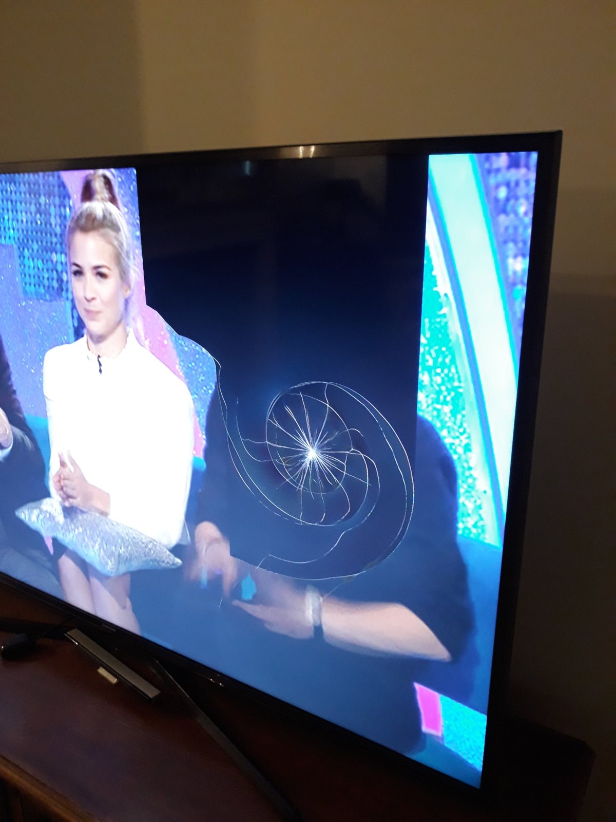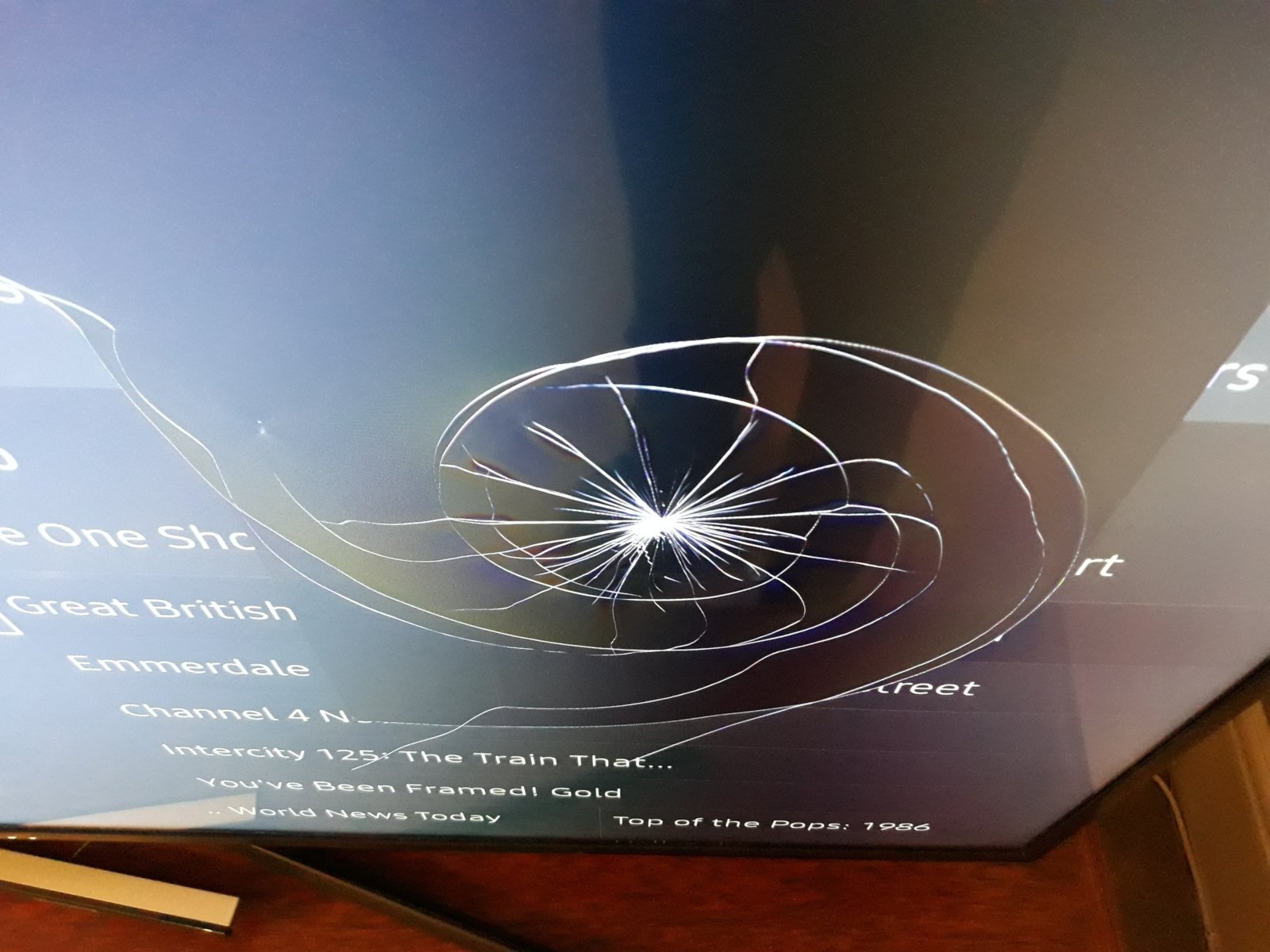 Arrived home tonight to discover that my 3-1/2 year old son has managed to strike our TV screen with a wooden handle - crunch!!!