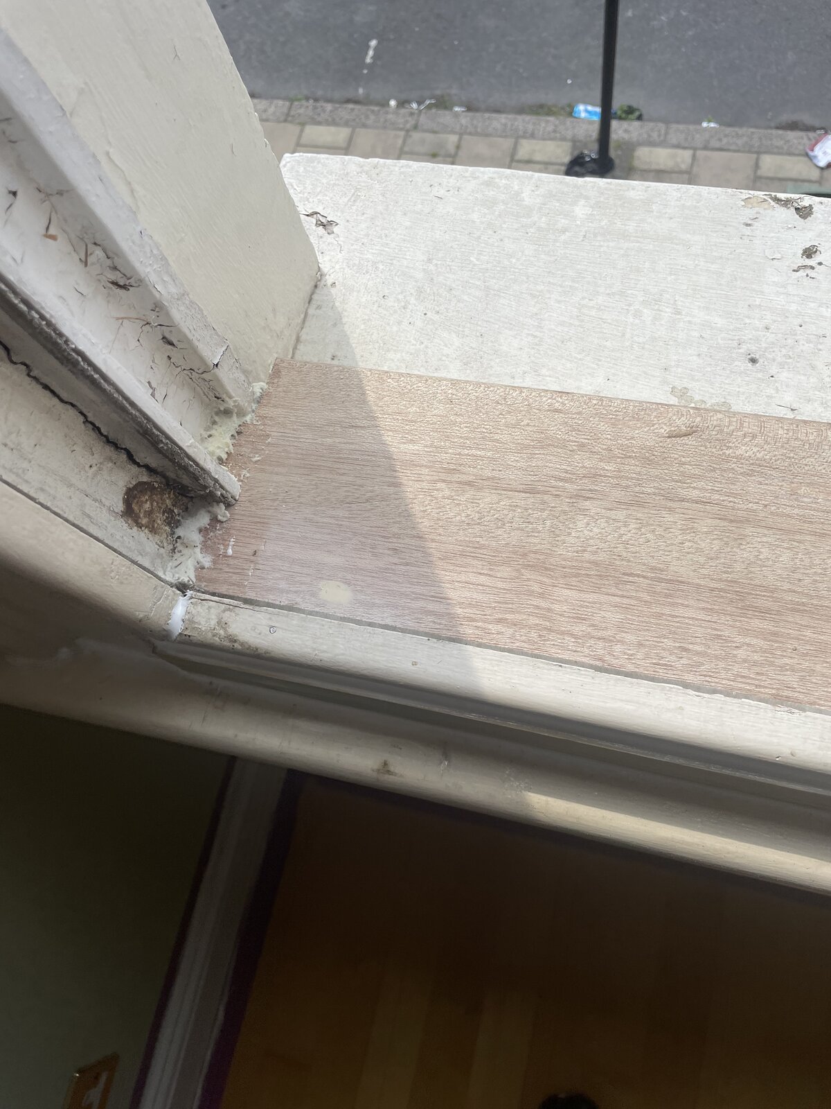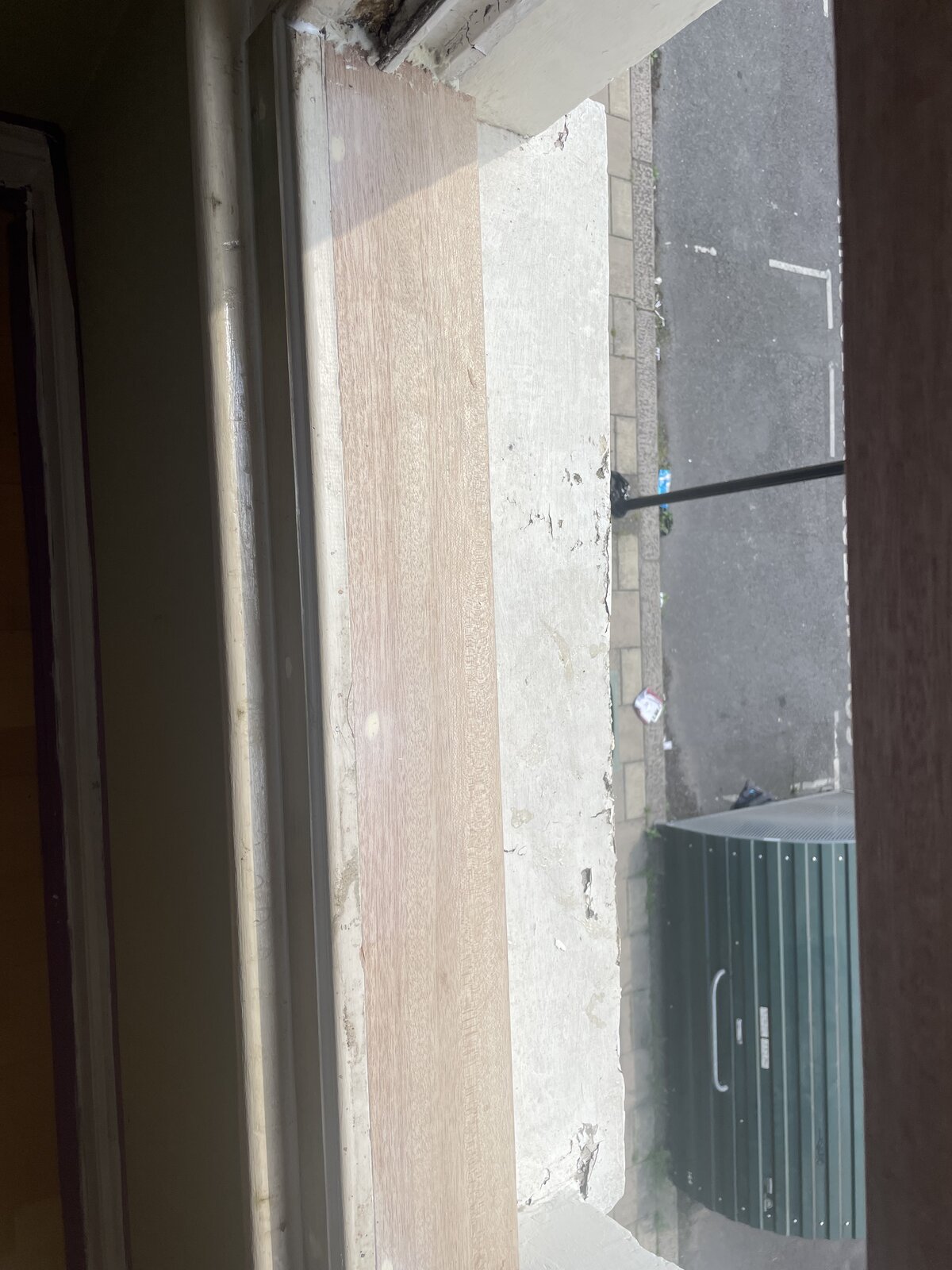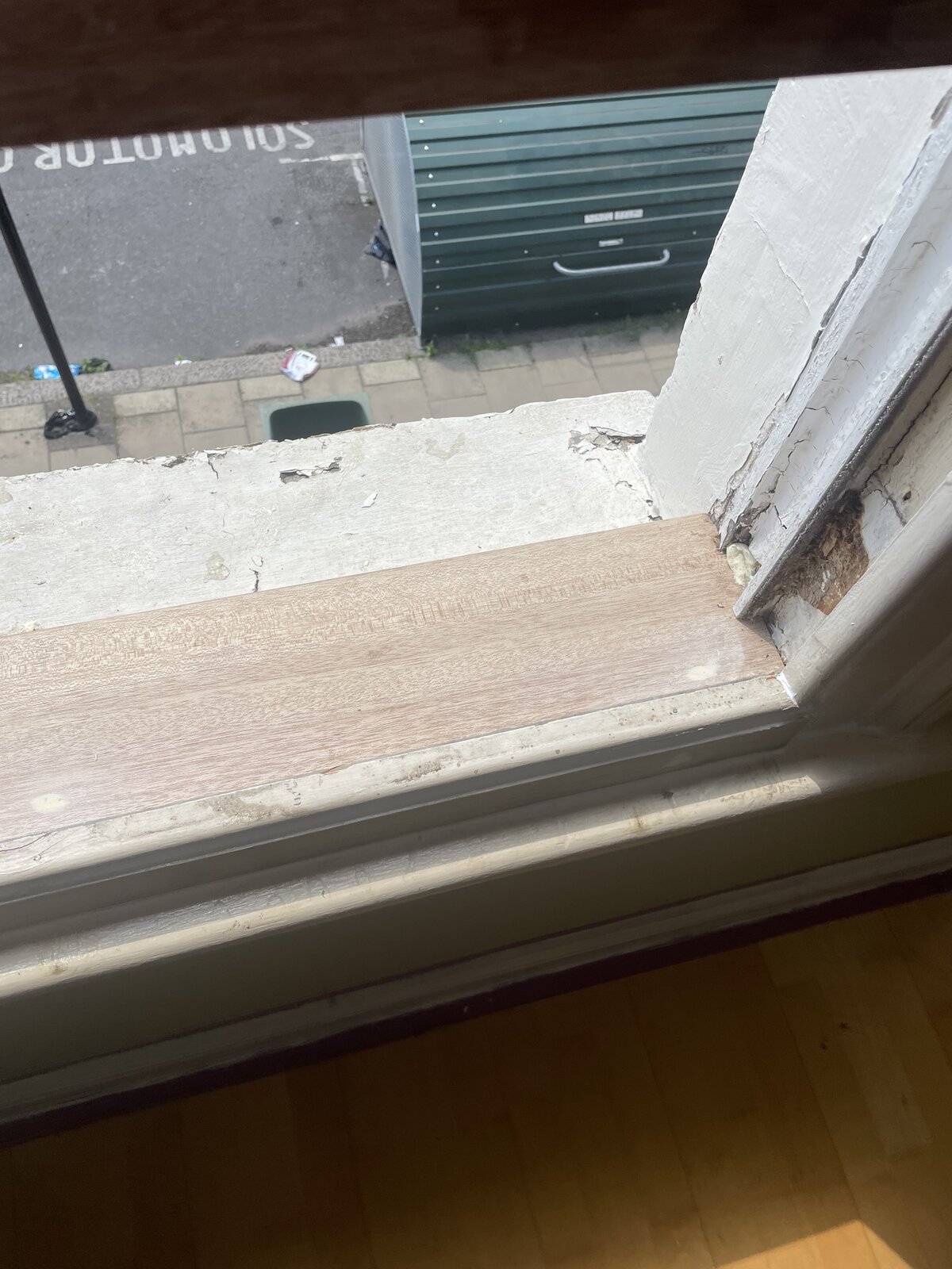 Is this acceptable to people on here? The wood was meranti and glued with polyurethane. He had to cut to size and route in a channel for the glass which took time but I was not happy with the finish. The wood at the front of the window is not flush with the rest of the window