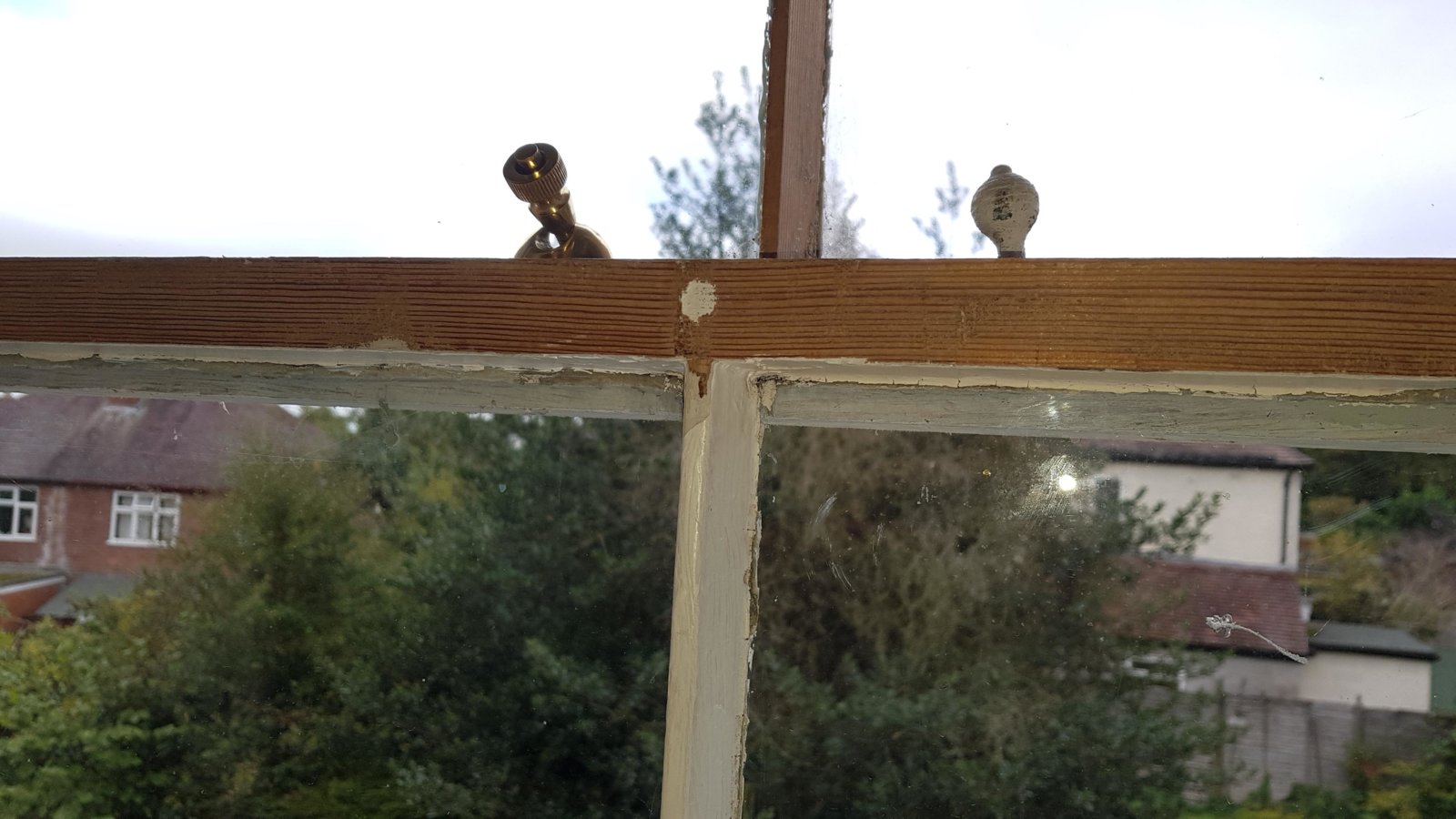 I'm in the process of refurbing our sash windows. The top and bottom sashes of most of the windows in my house are out of alignment. Photo attached.