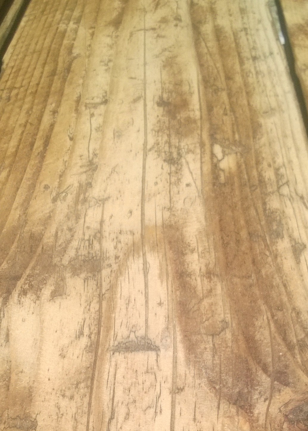 After treating with wood preserve the first example I have posted has a reddish finish with a pronounced grain while the second is a more muted white with just the stains that I have left showing or I can sand completely down to a white finish with mainly knots and a different faint grain.