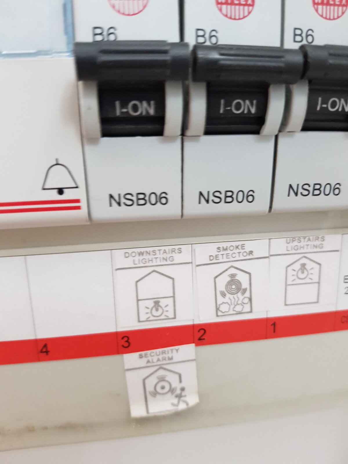I have lived at my current address 2 years. In that time I have realized that my burglar alarm will activate if the house loses power or the downstairs lights are switched off at the fuse box (looks to be on the same circuit).