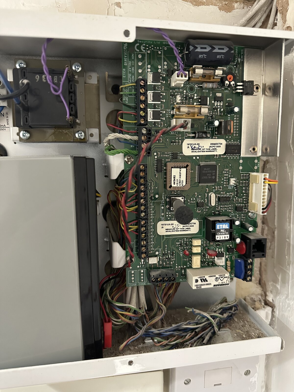 Previously I reset the main engineer code so have seen the inside of the panel, at that time the decorator removed a sensor from the office/study (without me knowing) and then shorted the cables as he is removed cables from the sensor housing as he wanted to fill and paint behind the sensor. I believe from memory the AUX fuse had burn't out so that was replaced after the sensor was wired back up and the system reset and worked fine. After that I also installed a new battery some months later.