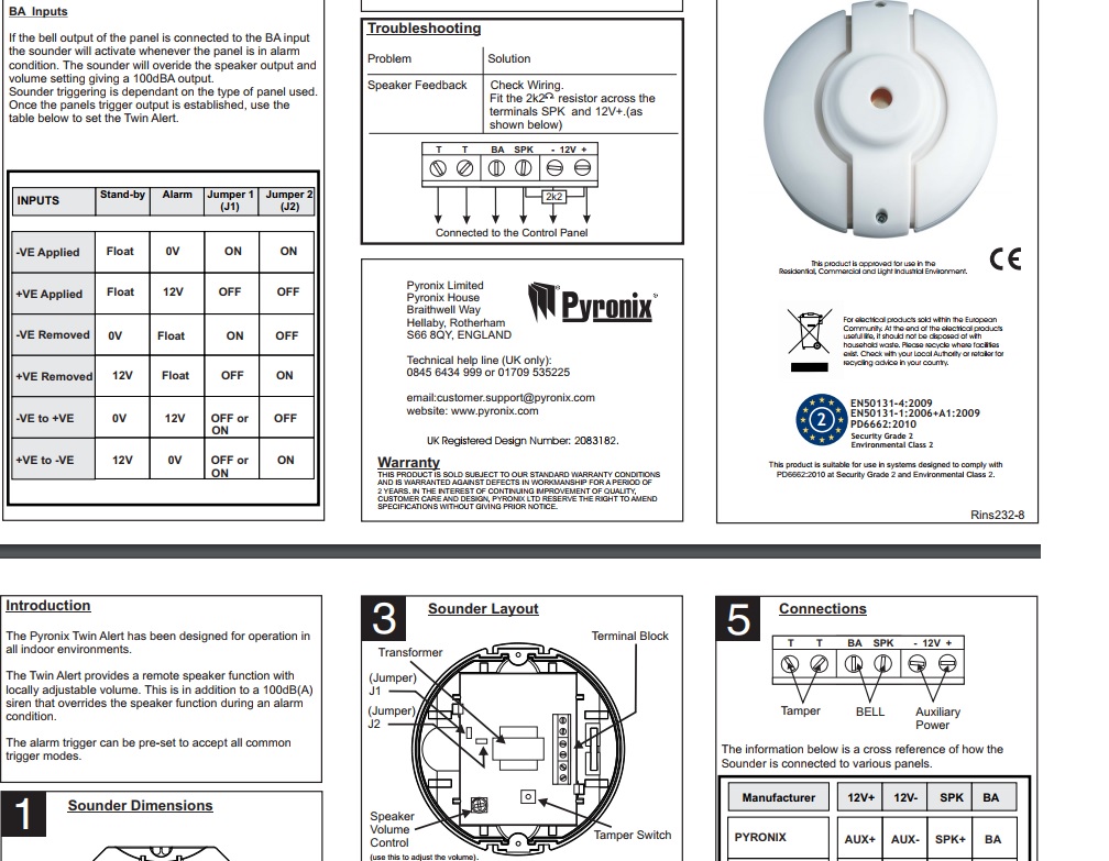 I'm trying to add a Pyronix Twin Alert to a scantronic ion160-ex.
