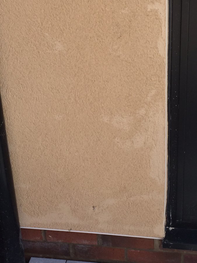 We had some coloured rendering done about 4 weeks ago. A scratch coat was applied and then a second coat which was finished using a scratch float.