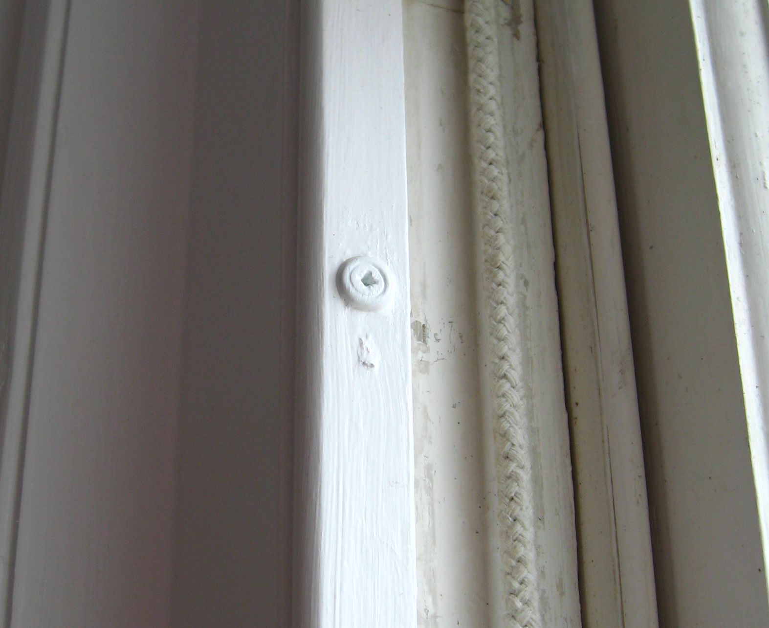 I suppose a cup washer on top of a painted wooden frame means you could remove it without damaging the paint, but they've been painted over now, so that no longer applies.