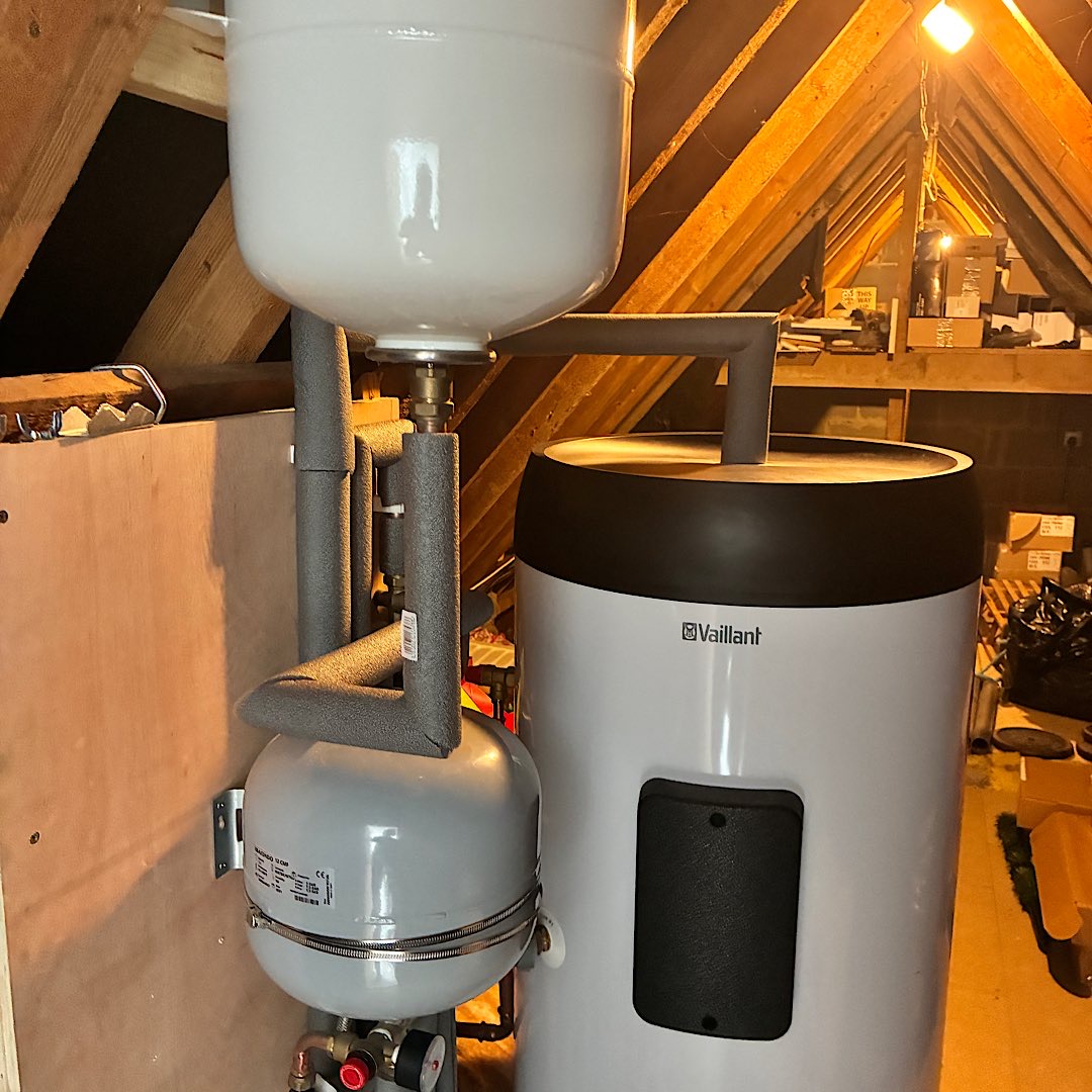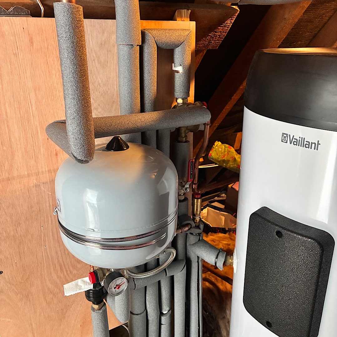 I've never quite got my head around the expansion vessels and which one does what. I have one right by the filling loop, and then the other which seems to be connected to CW supply pipework to cylinder. I have checked pressure today and the lower one is 1.1 bar. The one higher up is 2.79 bar.