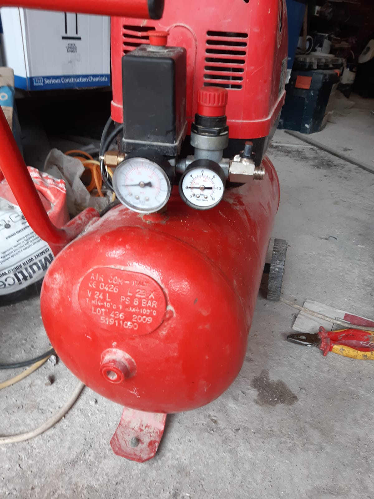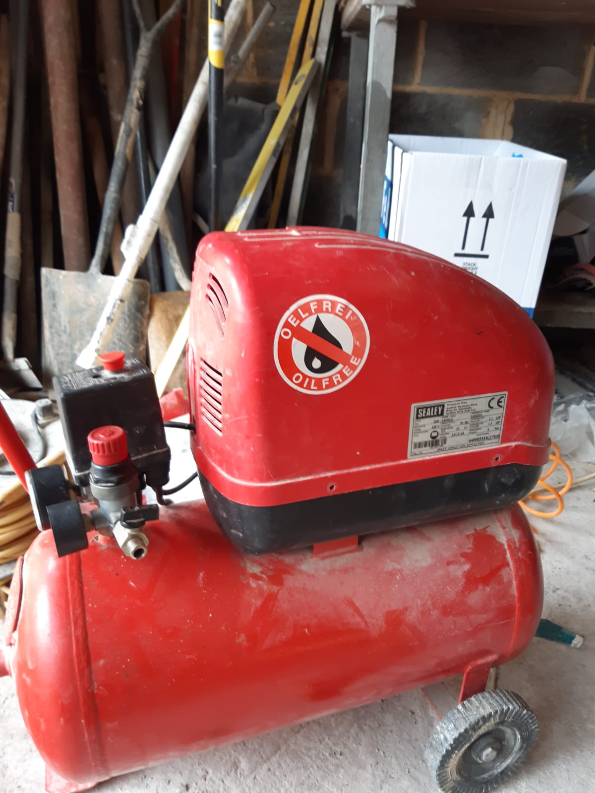 Sealy 1.5 HP 24L air compressor does not build pressure. when it stars, build pressure slowly to 2 bar and that where it stays no matter how long I keep it running. and when I switch off it leaks from under the switch assembly (black box). I dismantled the switch assembly and can not see anything that shows me where the leak is. there is a black rubber diaphragm which is in good shape.