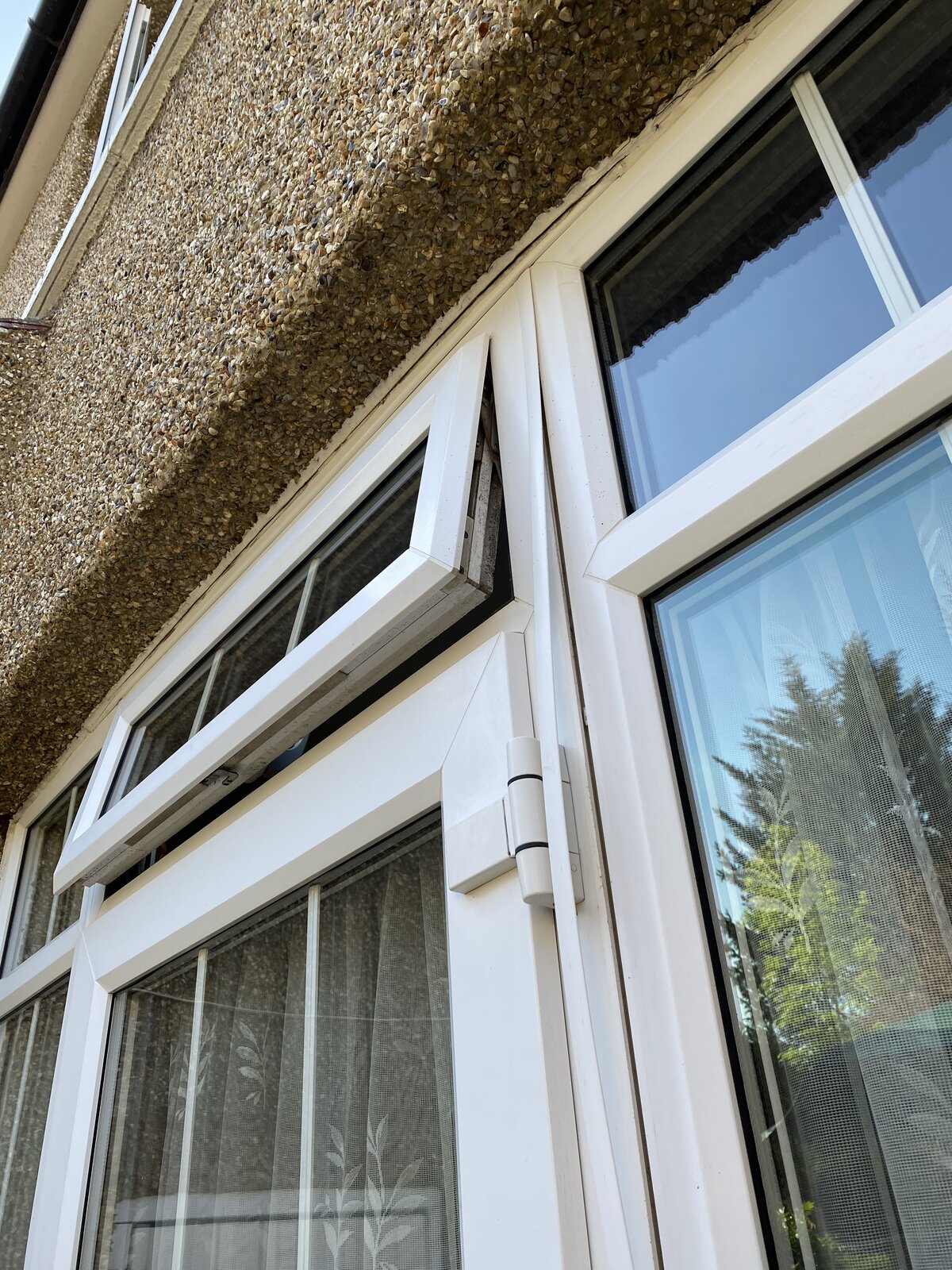 I have a upvc french door set comprising a double glazed door in the middle and a side pane either side of the door. I think both the door and side panels are screwed into concealed metal props between the door and the side panes. This is on the rear wall of the property which is a double brick wall. I'm guessing that the props were secured to timber plates at the top and bottom of the opening in the brickwork.
