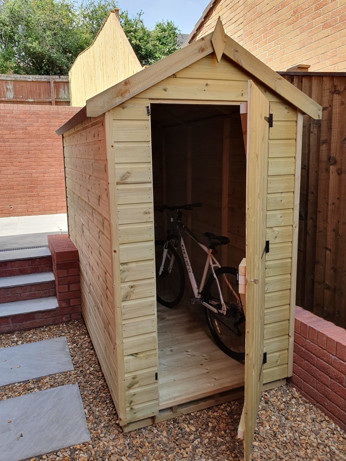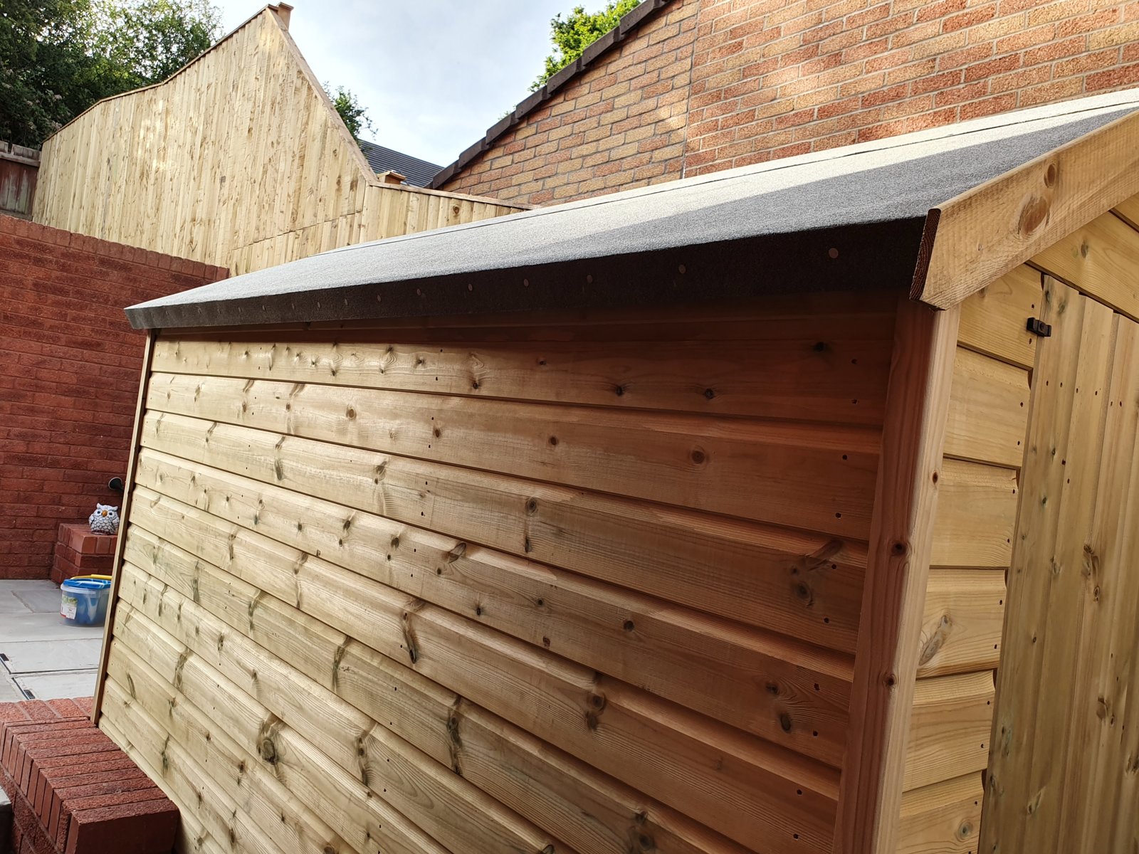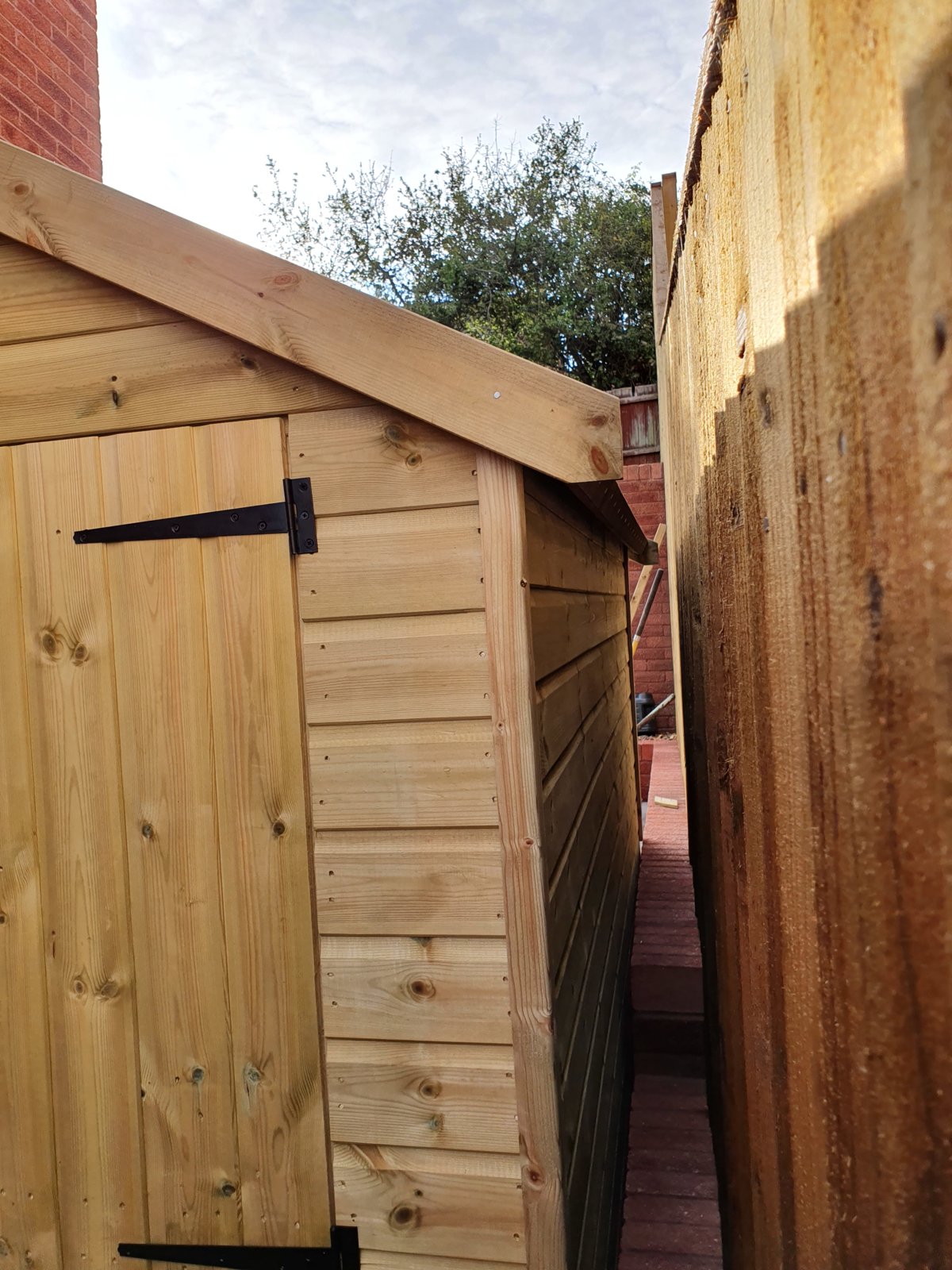 The shed was delivered and the installers said you should put a mini flow guttering on as the shed is close to the wall each side. No air can get to shed. Moisture will eventually build up.