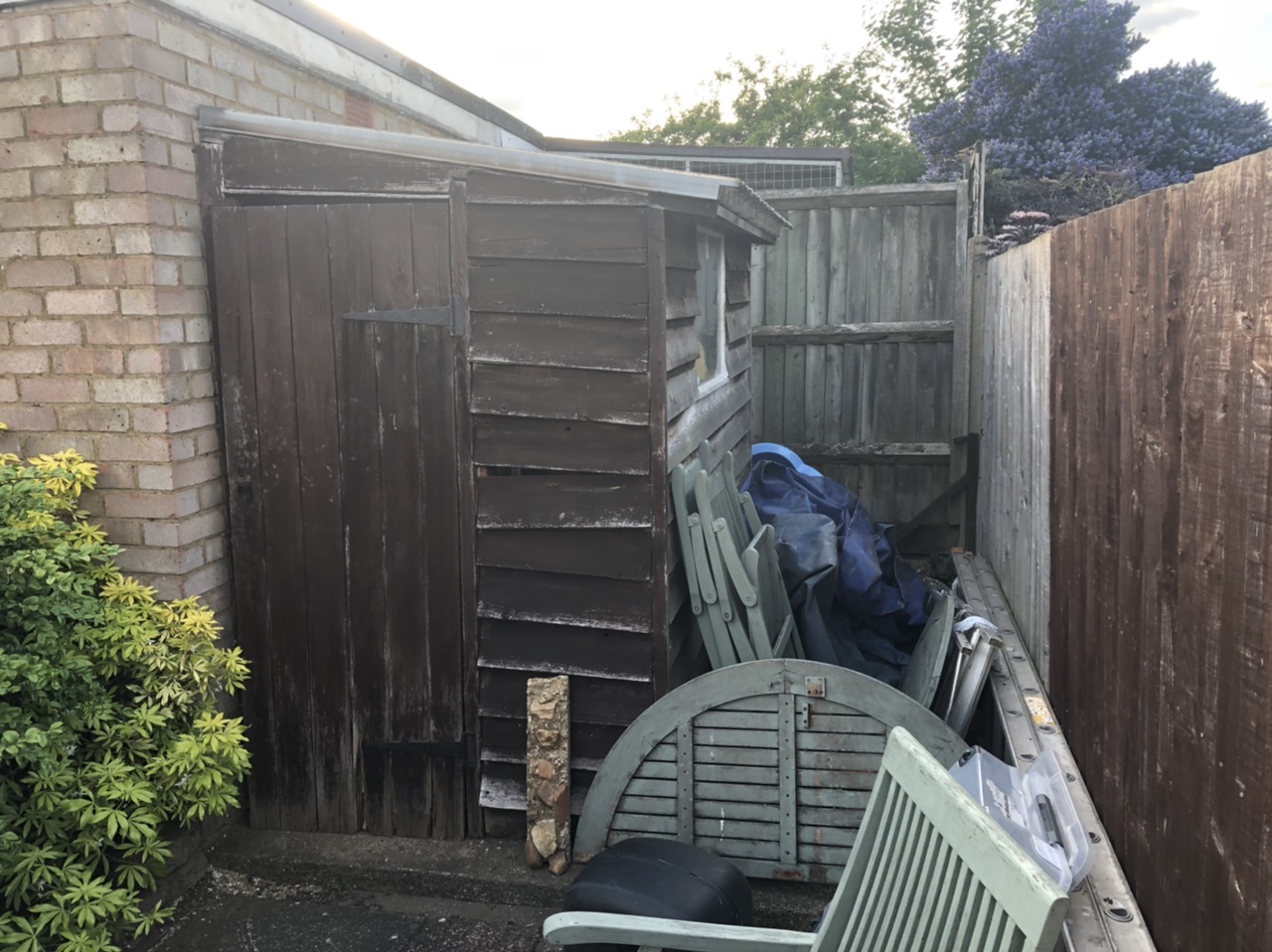 Picture shows current shed that I’m going to replace. New shed will completely fill the space upto the fence.