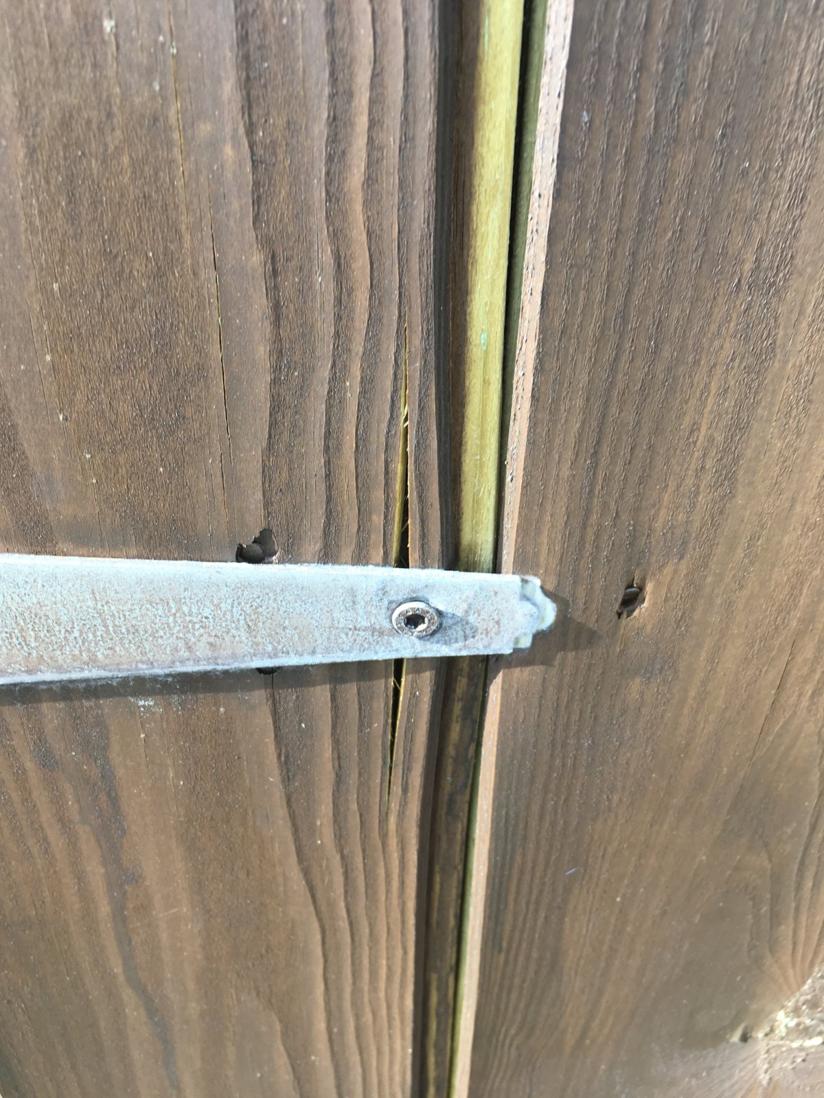 - Door.jpg shows a front view of the doors. You can see that it has retracted so much that there are now gaps between pretty much every board along the double doors.