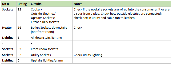 From switching off MCBs I've mapped out the circuits and it seems like the outside electrics (2 sheds and a couple of garden sockets plus lights) are fed from a 32A MCB it shares with the upstairs sockets, right hand kitchen sockets and cooker (gas). Only two 2.5mm t and e in the CU so guessing this is the ring final and looks to go upstairs first. There is SWA outside, coming into the outbuilding attached to the house. Here it seems to be fed from a single (guessing 2.5mm) t and e.