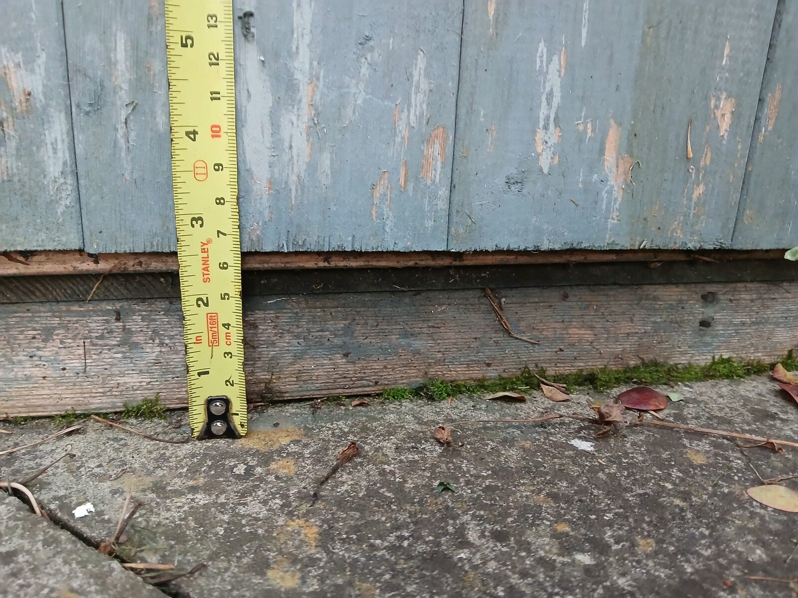 The other side is about a 5" gap (so about a 2" gap from the roof overhang to the fence).