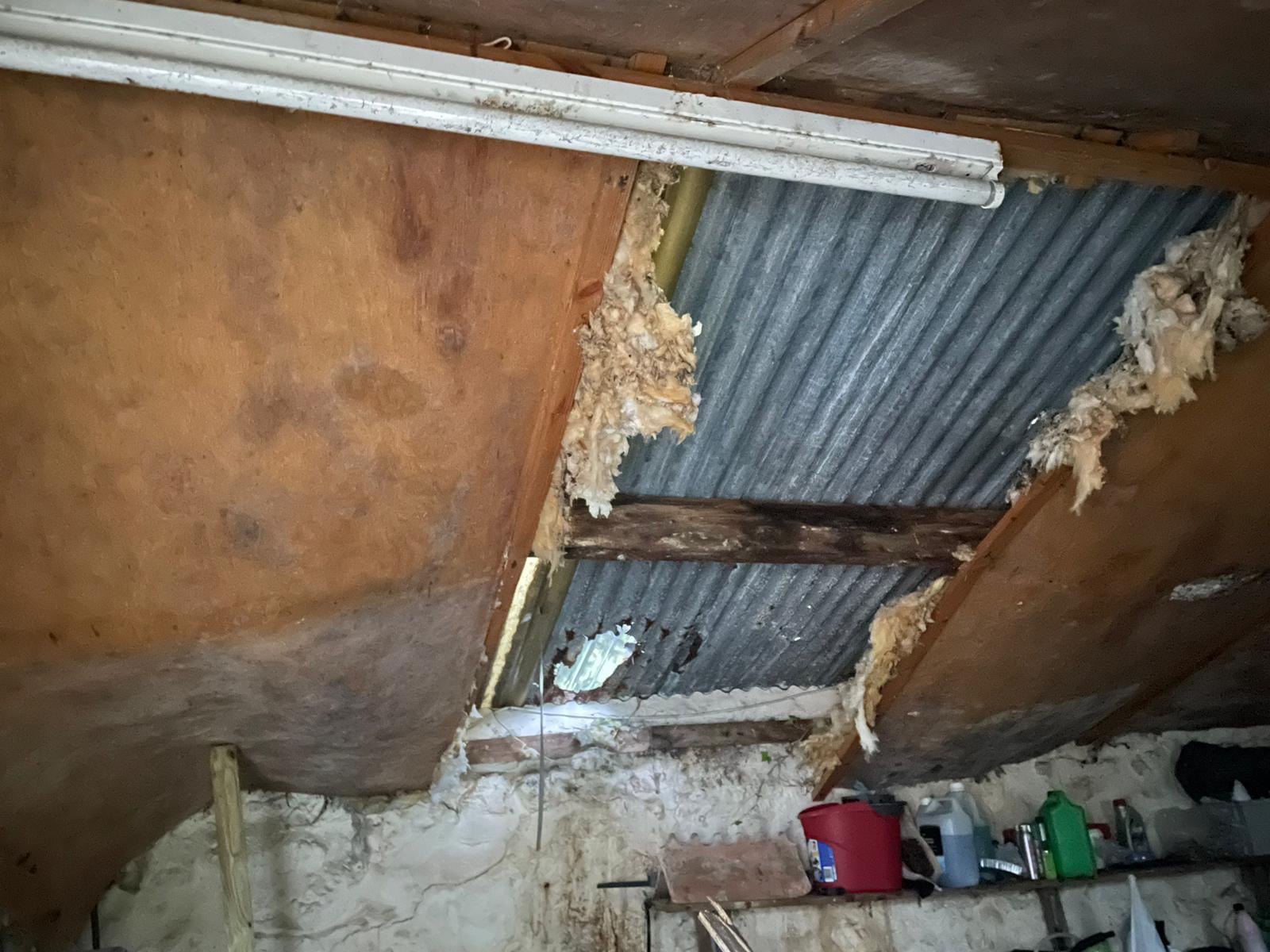 Hi, need some help please! Went in the shed this evening and the roof covering had collapsed, with a hole ️ in the rusted old corrugated sheeting.
