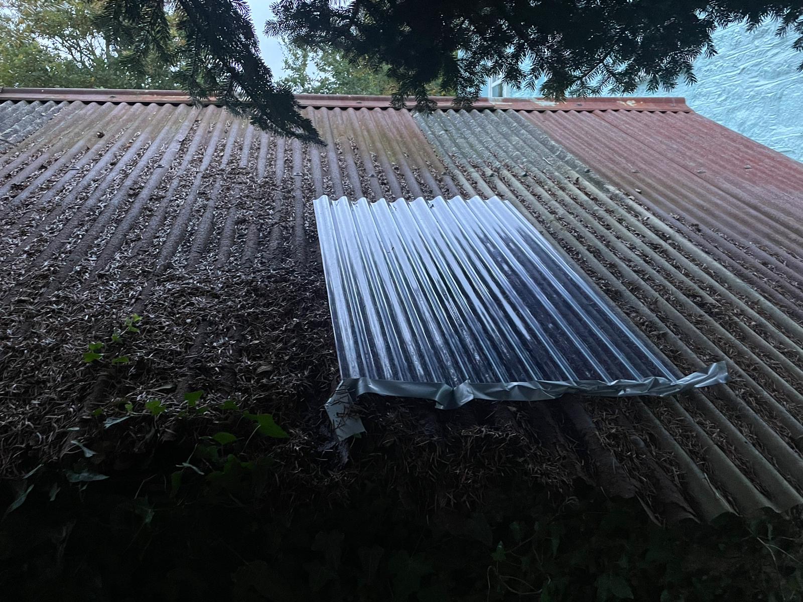 I’ve put a bit of plastic roofing over it for now , but as soon as it gets a gust up it’s going lift off , or rains it’s going come in! And I live in Cornwall so it’s going do both soon